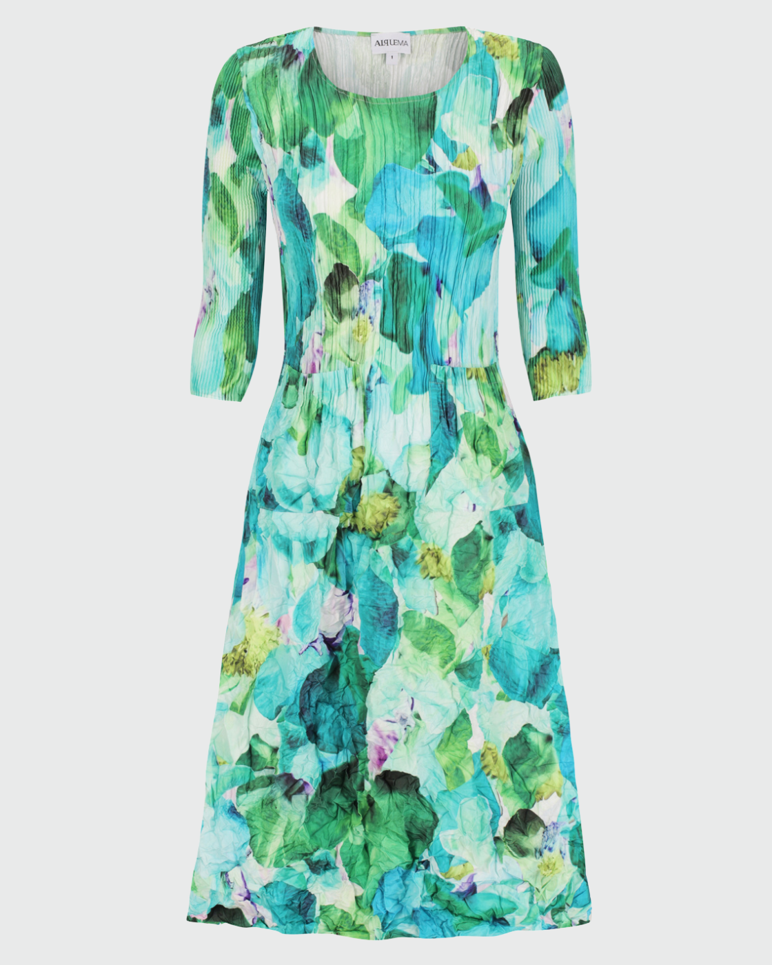 The Alquema 3/4 Sleeve Smash Pocket Dress is a timeless piece that combines artful design with everyday functionality. Designed for travel, with crushed pleats that always look chic. These unique pleats mean no ironing, just pack, unpack, and go. Its dynamic texture and stretch fabric contour and drape beautifully, enhancing every shape. The addition of 3/4 sleeves makes it suitable for year-round wear, transitioning seamlessly from casual outings to formal events.