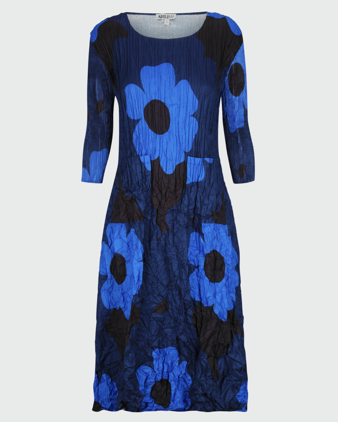The Alquema 3/4 Sleeve Smash Pocket Dress is a timeless piece that combines artful design with everyday functionality. Designed for travel, with crushed pleats that always look chic. These unique pleats mean no ironing, just pack, unpack, and go. Its dynamic texture and stretch fabric contour and drape beautifully, enhancing every shape. The addition of 3/4 sleeves makes it suitable for year-round wear, transitioning seamlessly from casual outings to formal events.