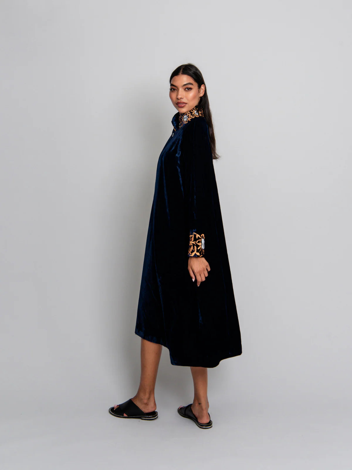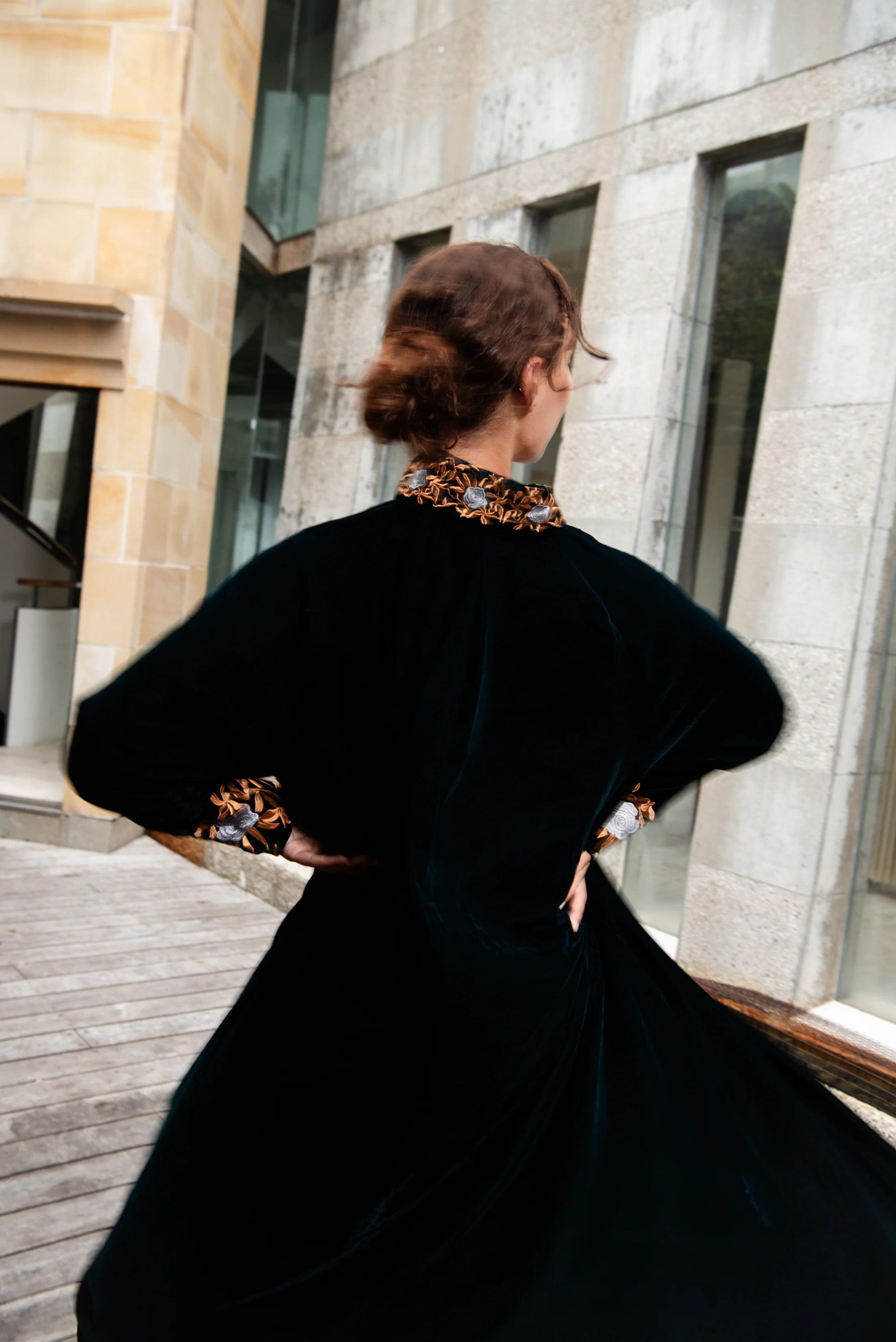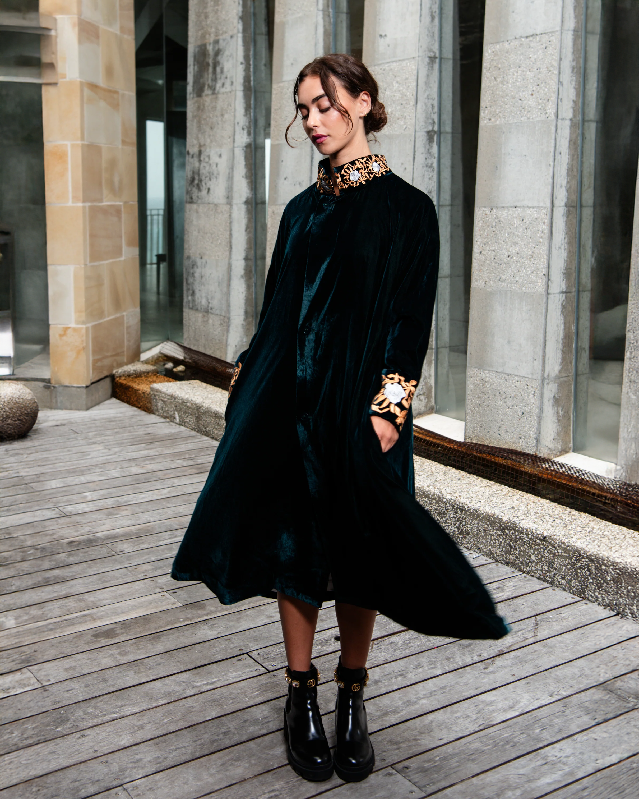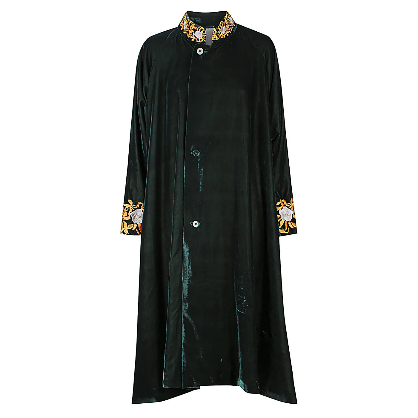 Daring and mysterious, the Velluto Coat is one of comfort and detail. With it's striking lining, and beautifully embroidered neckline and cuffs it hangs from the body with ease. Adorned with button closures, this coat will become your favourite to impress with.