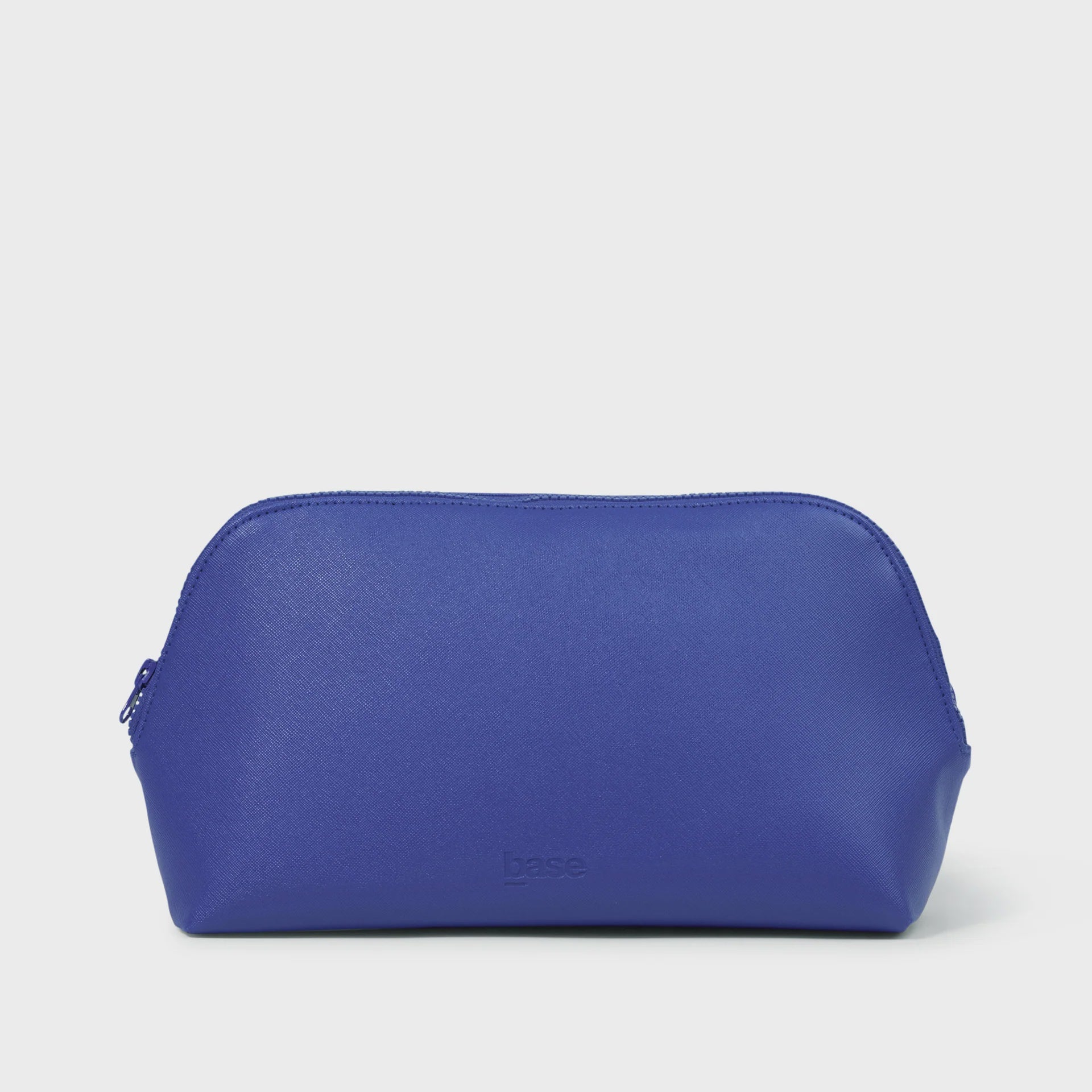 The semi circle shape of this cosmetic base large holds more than the basics. A wide mouth opening with a chunky zip top makes it easy to grab what you need. The interior zip pocket keeps smaller items safe.