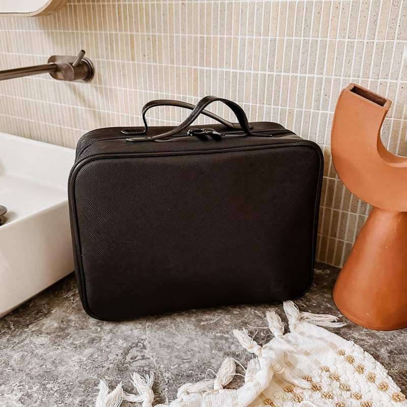 The Louenhide Emma Cosmetic Case iis functional and spacious with three zipped compartments to store your makeup, skincare, and toiletries all in one luxurious cosmetic bag. Comes with a hanging hook for easy access while travelling.