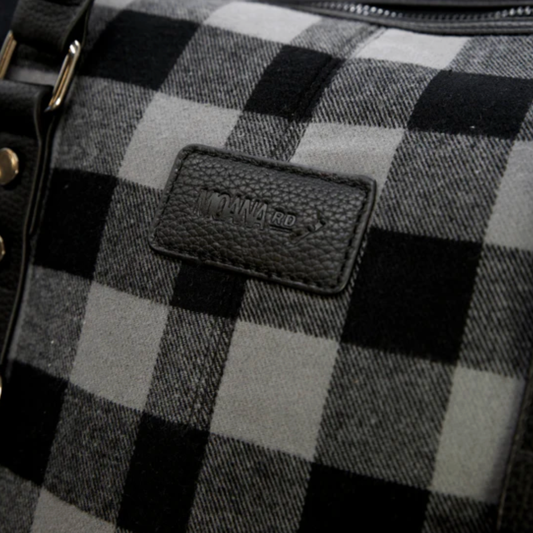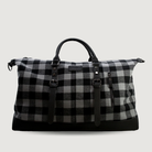 Introducing this delightful checkered holdall, perfect for a weekend getaway, road trip or Kiwi adventure. This trendy black & grey canvas bag opens to reveal a roomy polyester lined inner. Vegan leather touches add softness and further style, with two external and one internal smaller zipped compartments for essentials.
