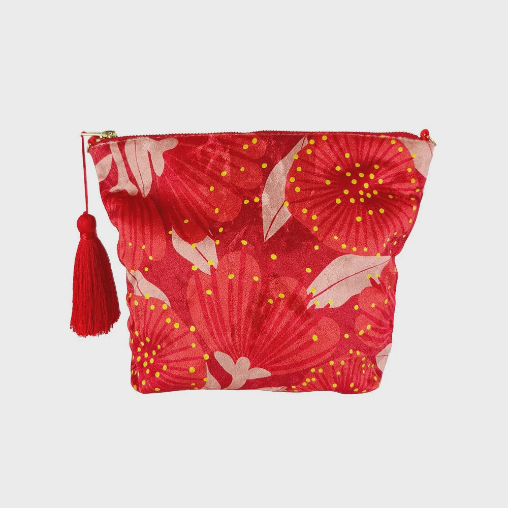 Bright Botanical Velvet Cosmetic Bag | Pohutukawa