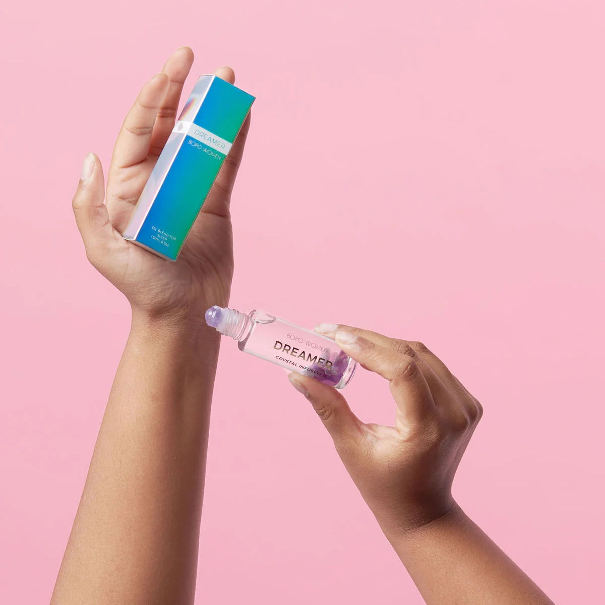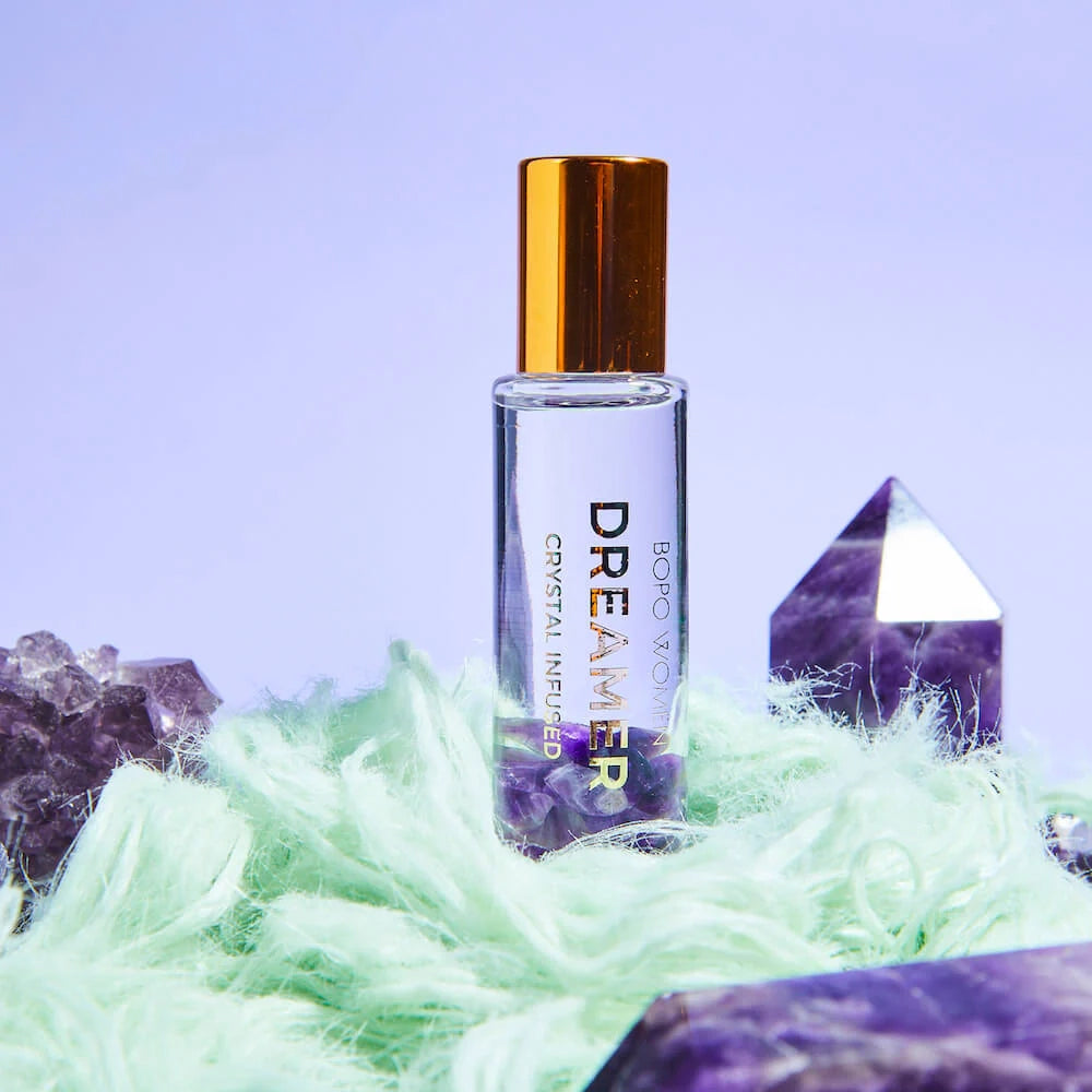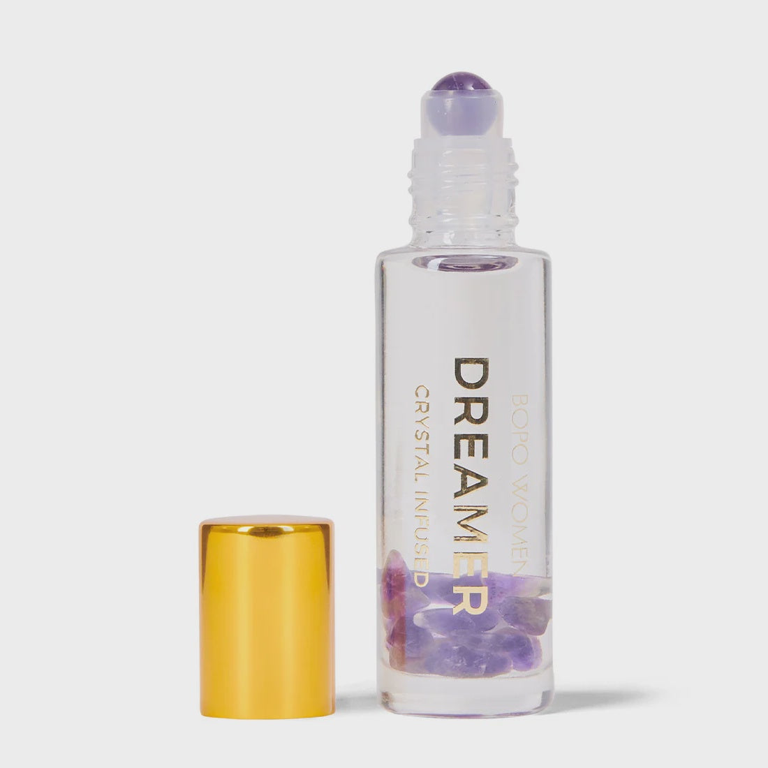 A crystal infused essential oil blend to calm the mind, relax the body and support peaceful sleep. A dreamy mix combining lemon, juniper berry and lavender essential oils. Perfect as a light natural perfume alternative. Features a Dream Amethyst rollerball.