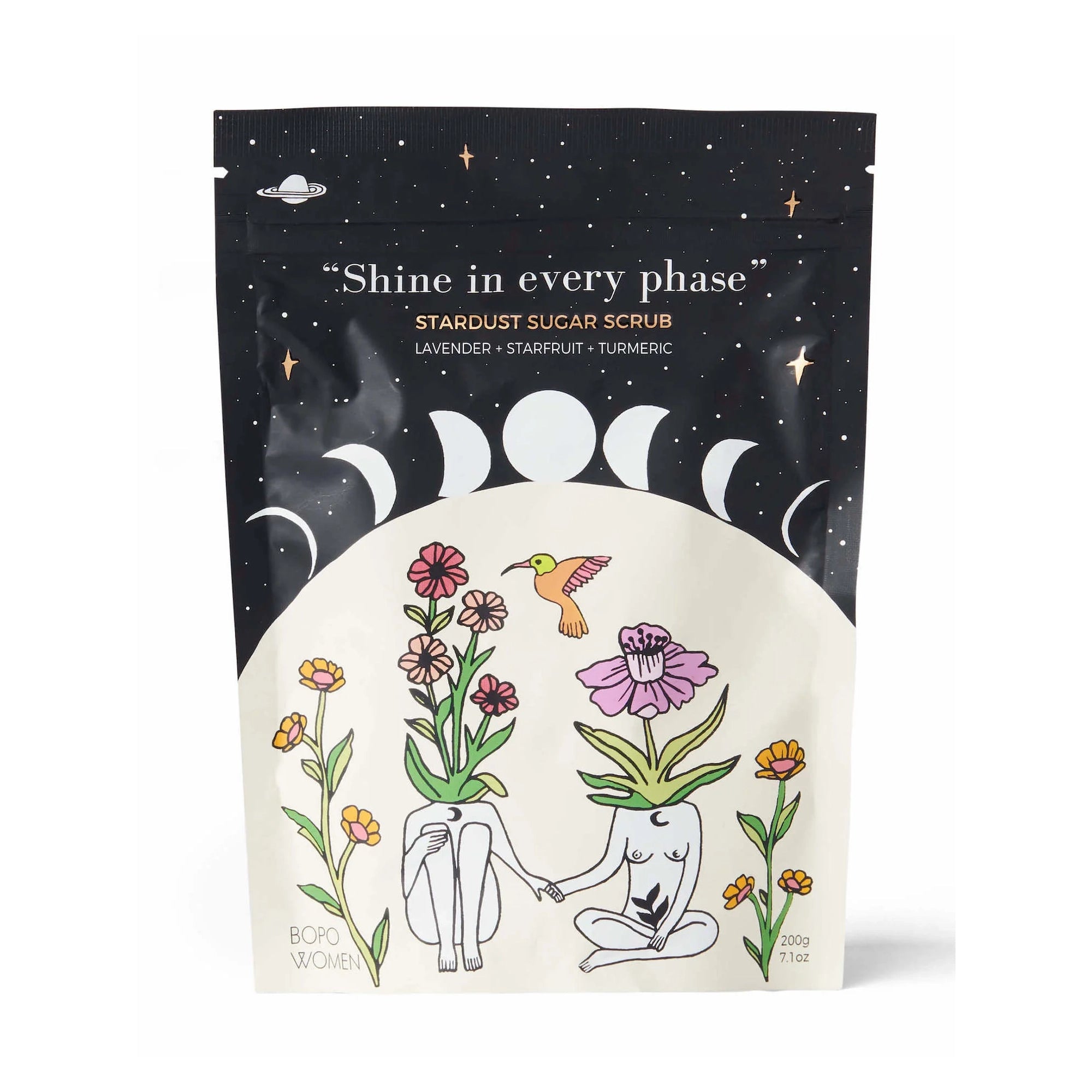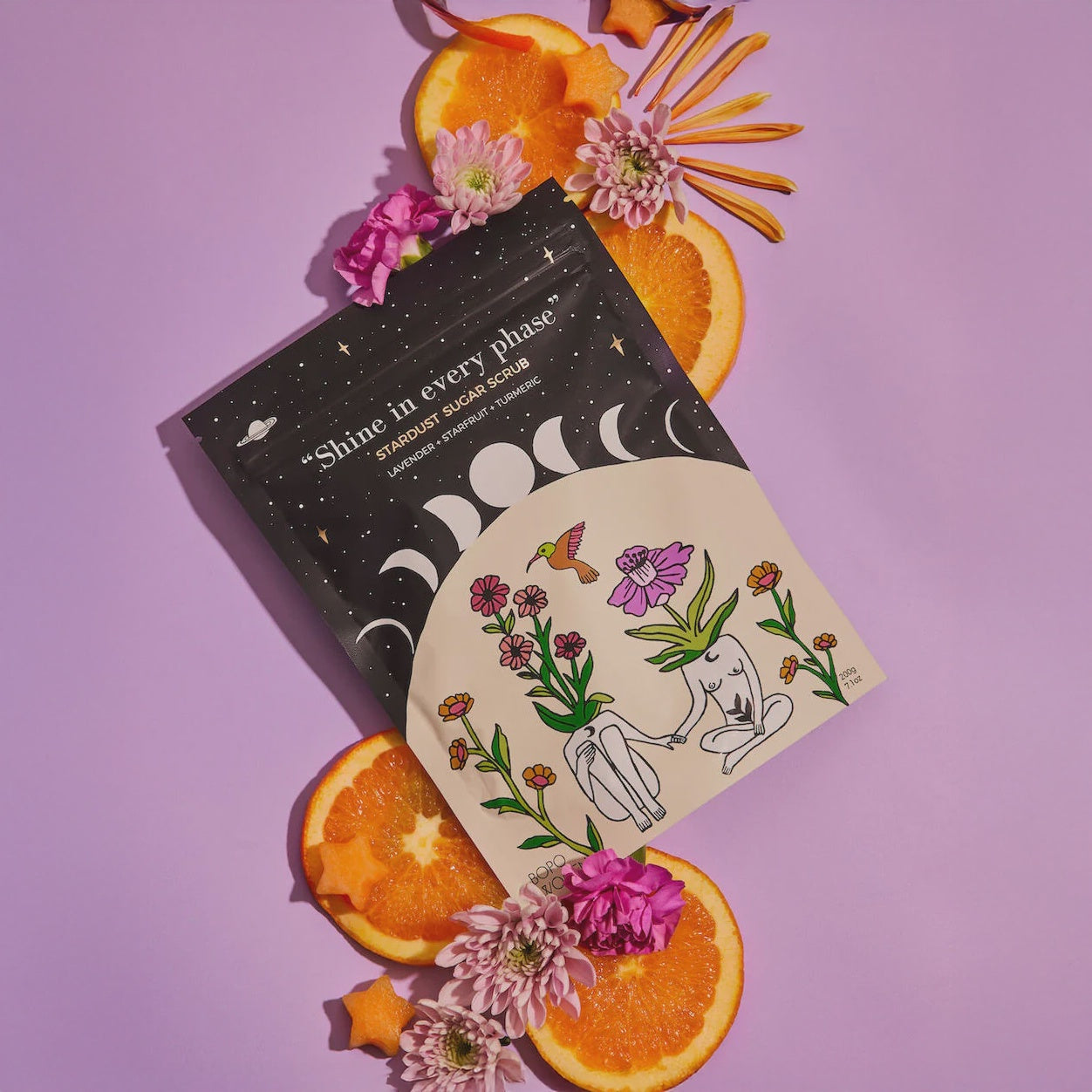 The all-natural Stardust Sugar Scrub is crafted from calming essential oils and skin healing superfoods. Lavender bud, starfruit, orange peel and anti-inflammatory turmeric powders are blended with sugar, healing salts, almond and coconut to create a formula that smooths and nourishes your skin. This combo will leave your body feeling deeply moisturised and smelling like a dream, long after you use it.