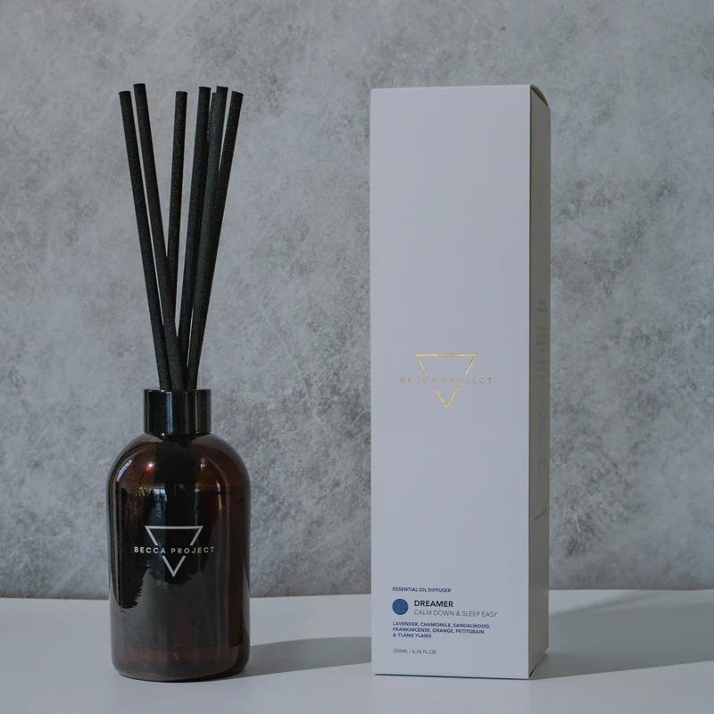 Becca Project diffusers are well and truly hand-made, using certified organic essential oils and 100% phthalate free fragrance oils. This musky blend of lavender, chamomile, sandalwood, frankincense, orange, petitgrain & ylang ylang will provide long lasting fragrance to any room. It is perfect in the bedroom or living room to calm your body and mind and prepare yourself for a restful nights sleep.