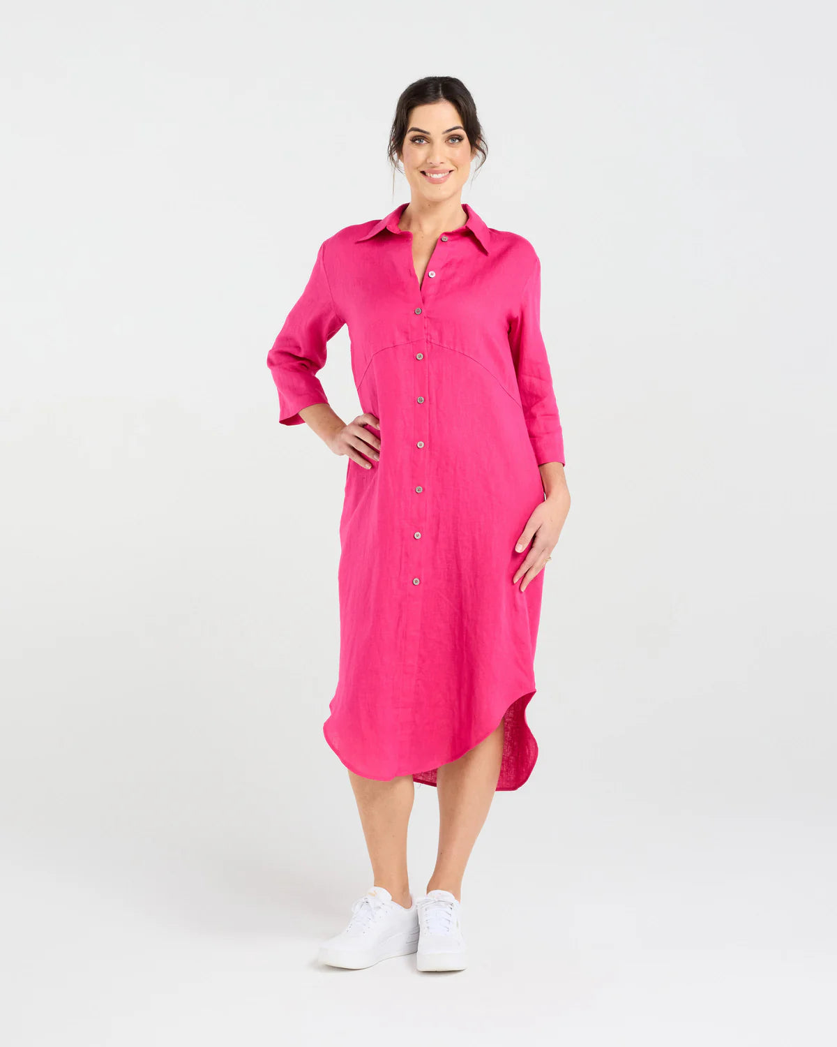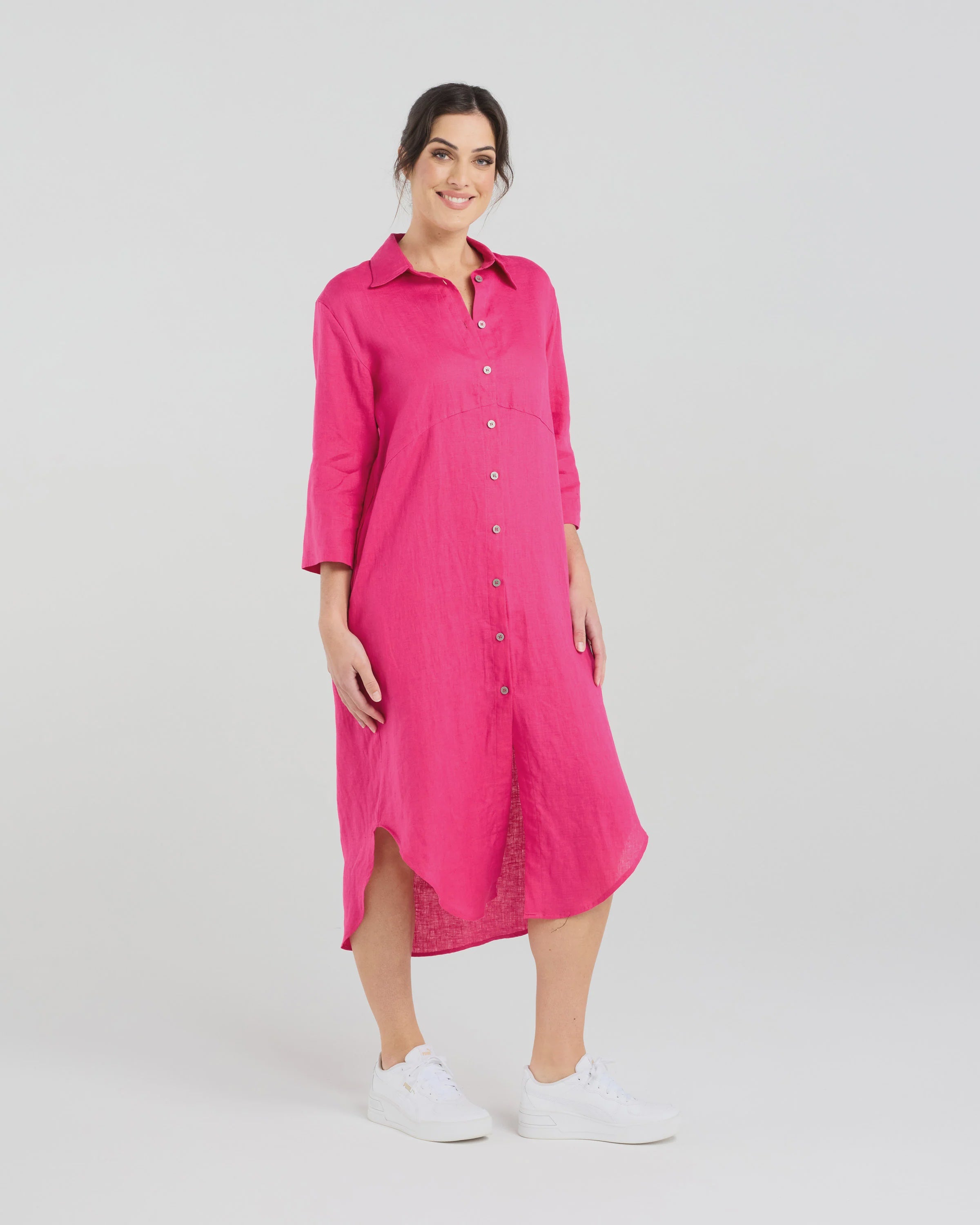 Blackstone Amelie Linen Shirt Dress | Raspberry Sorbet