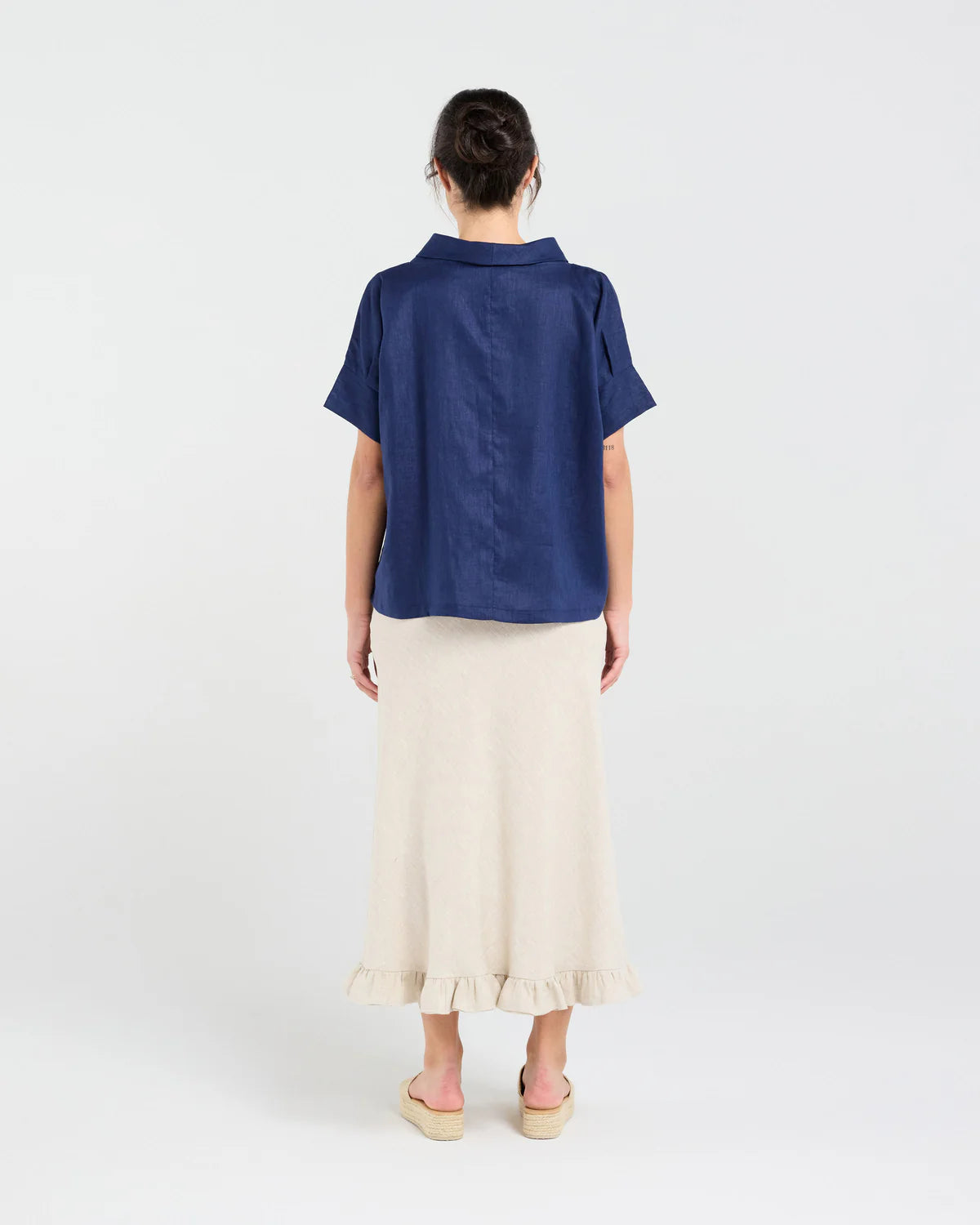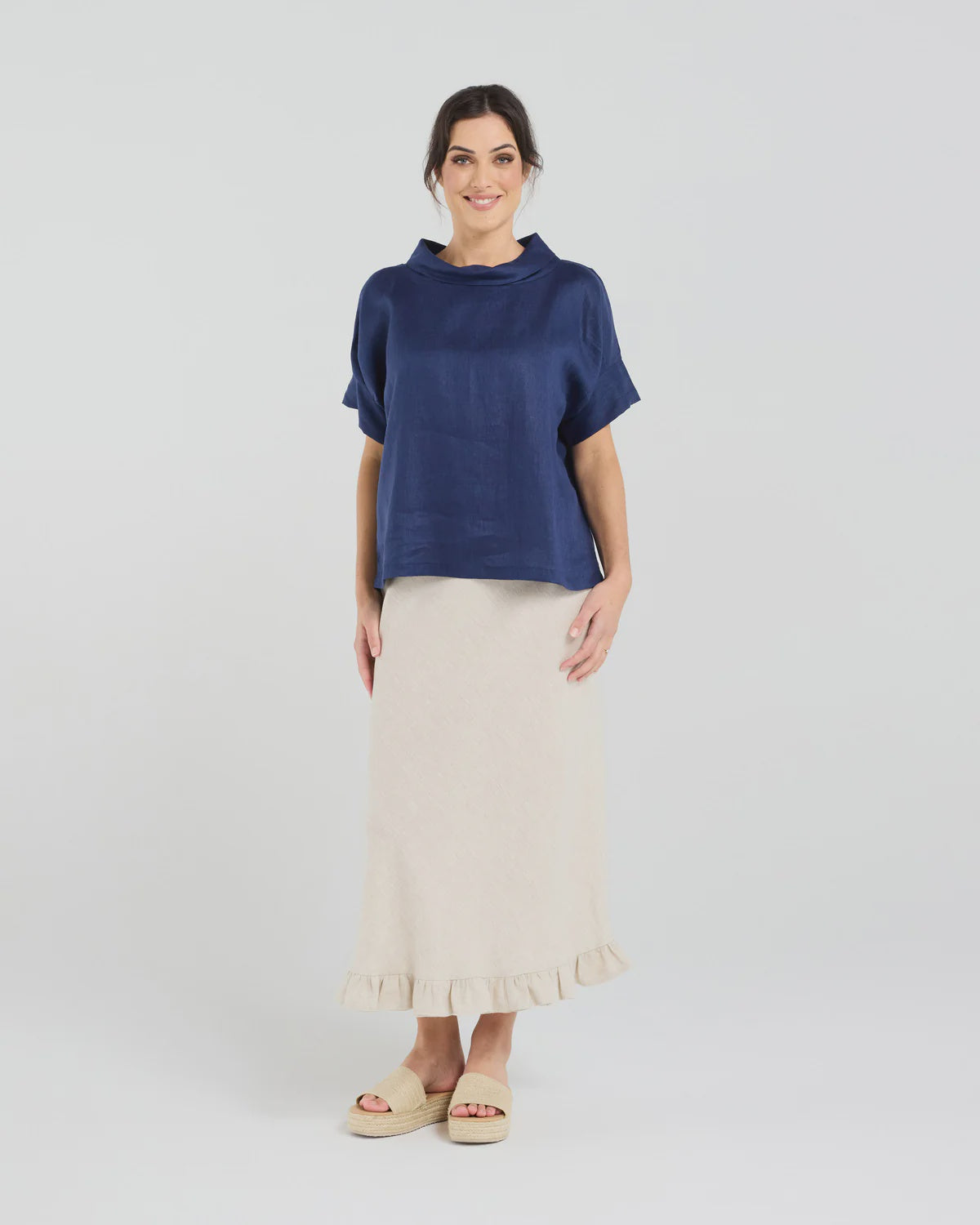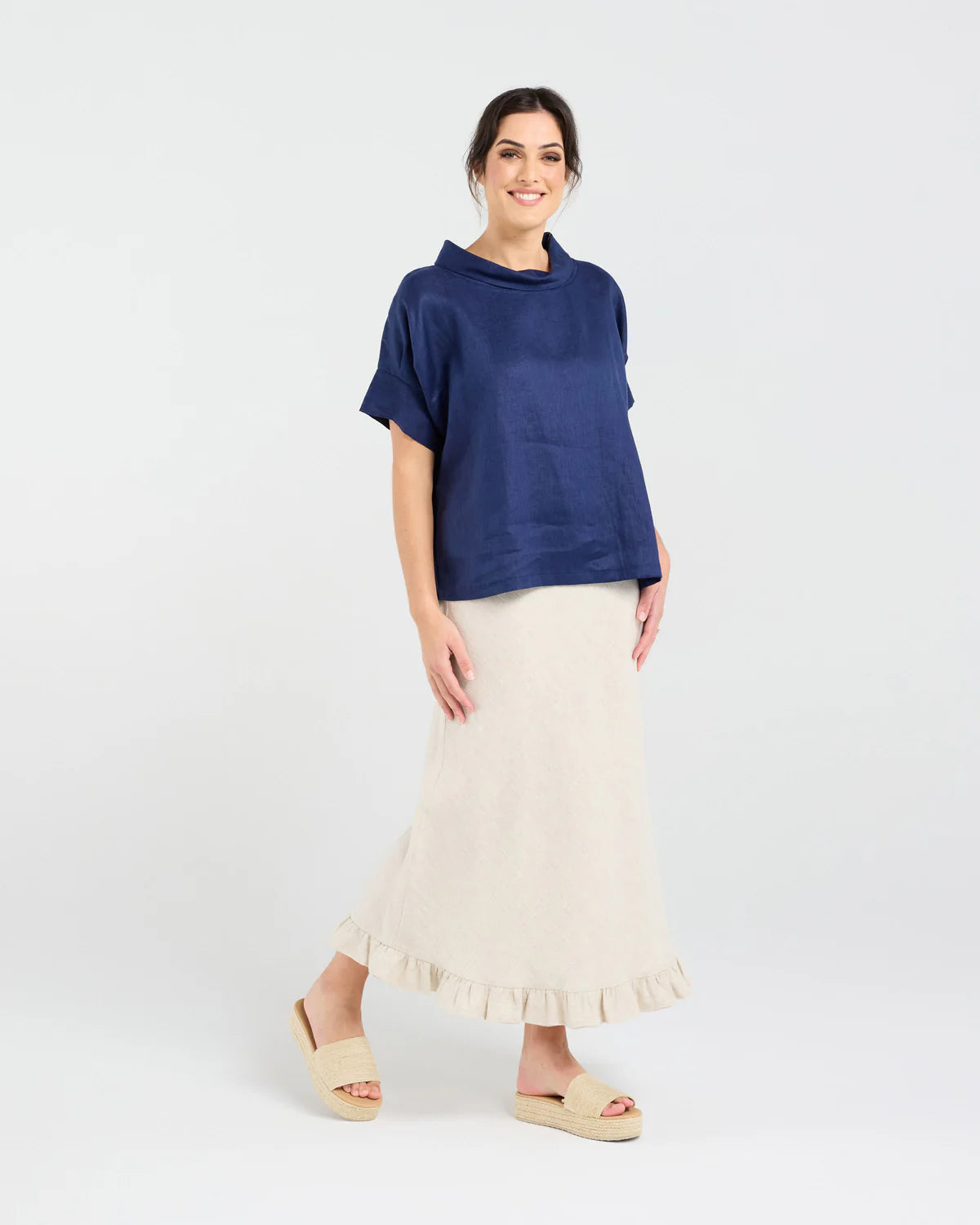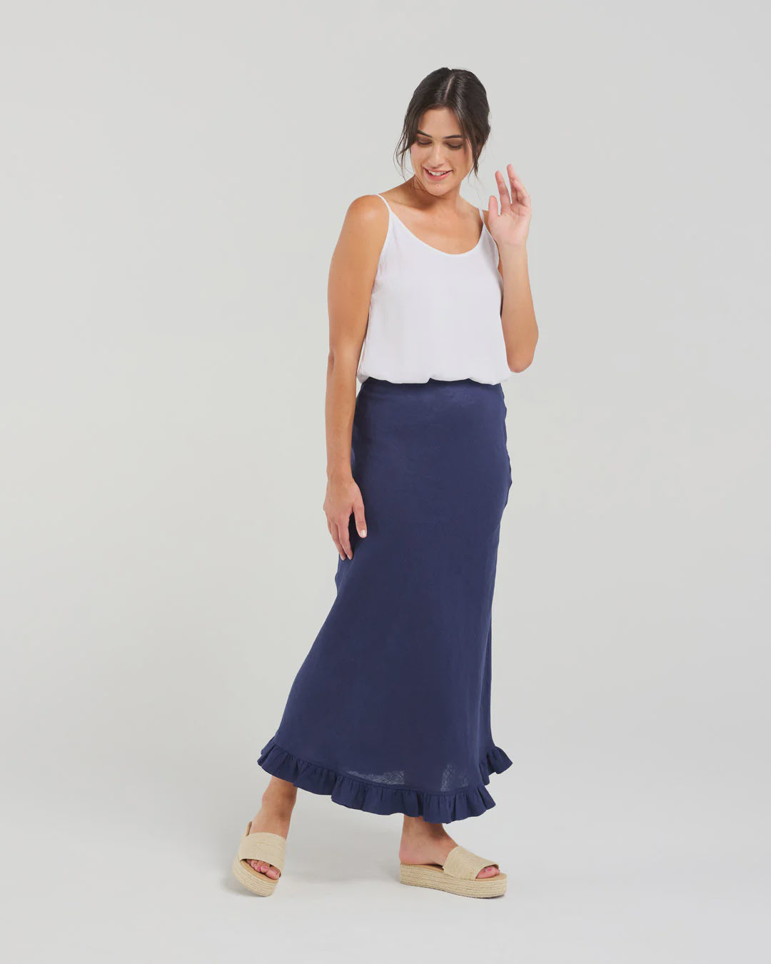 Blackstone Carine Frill Hem Linen skirt | French Navy
