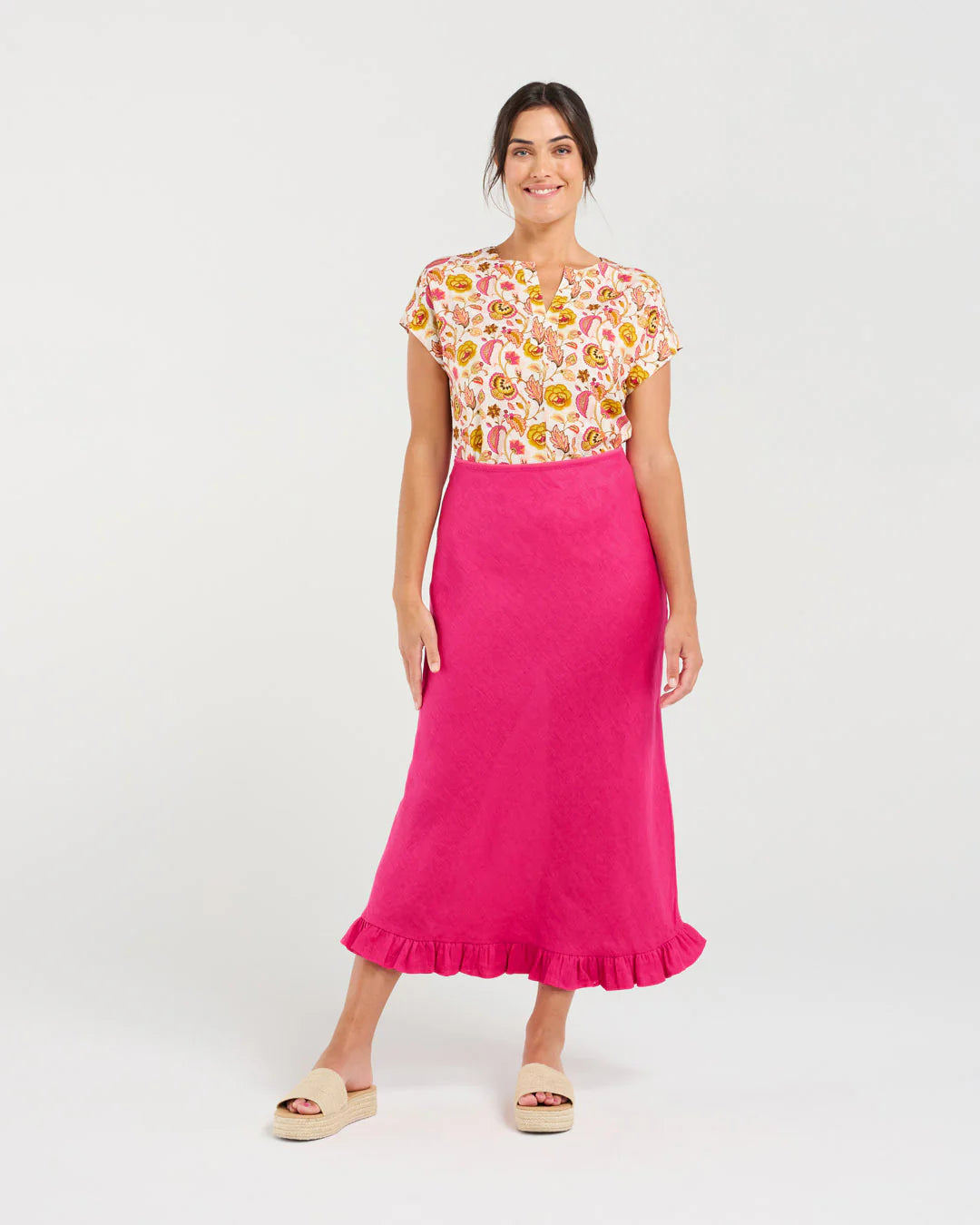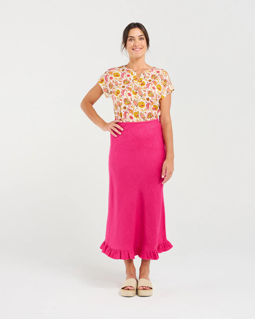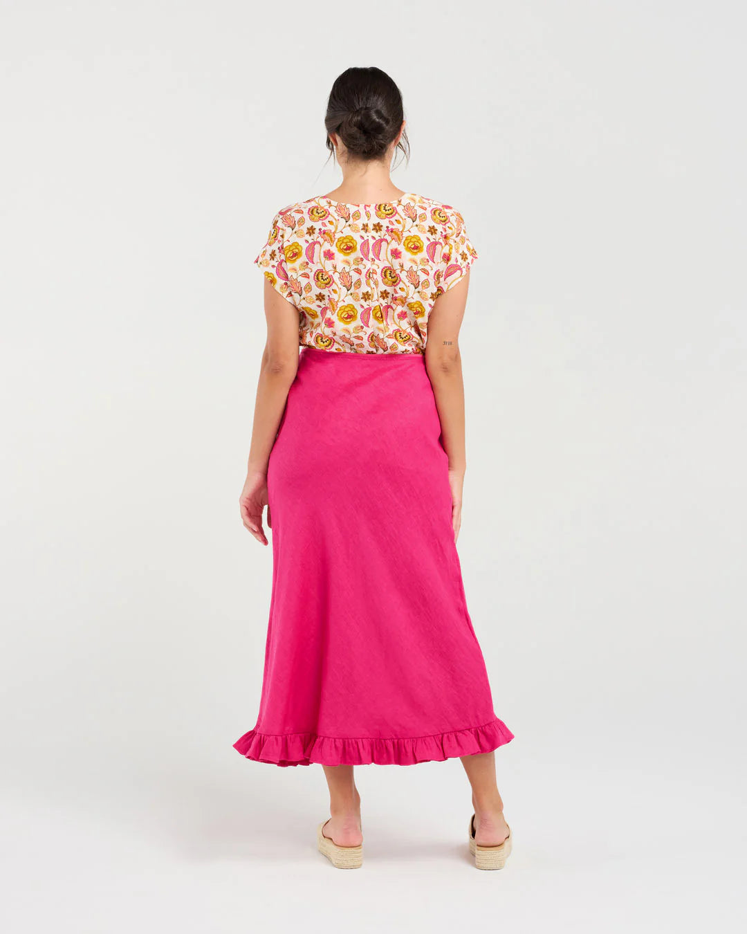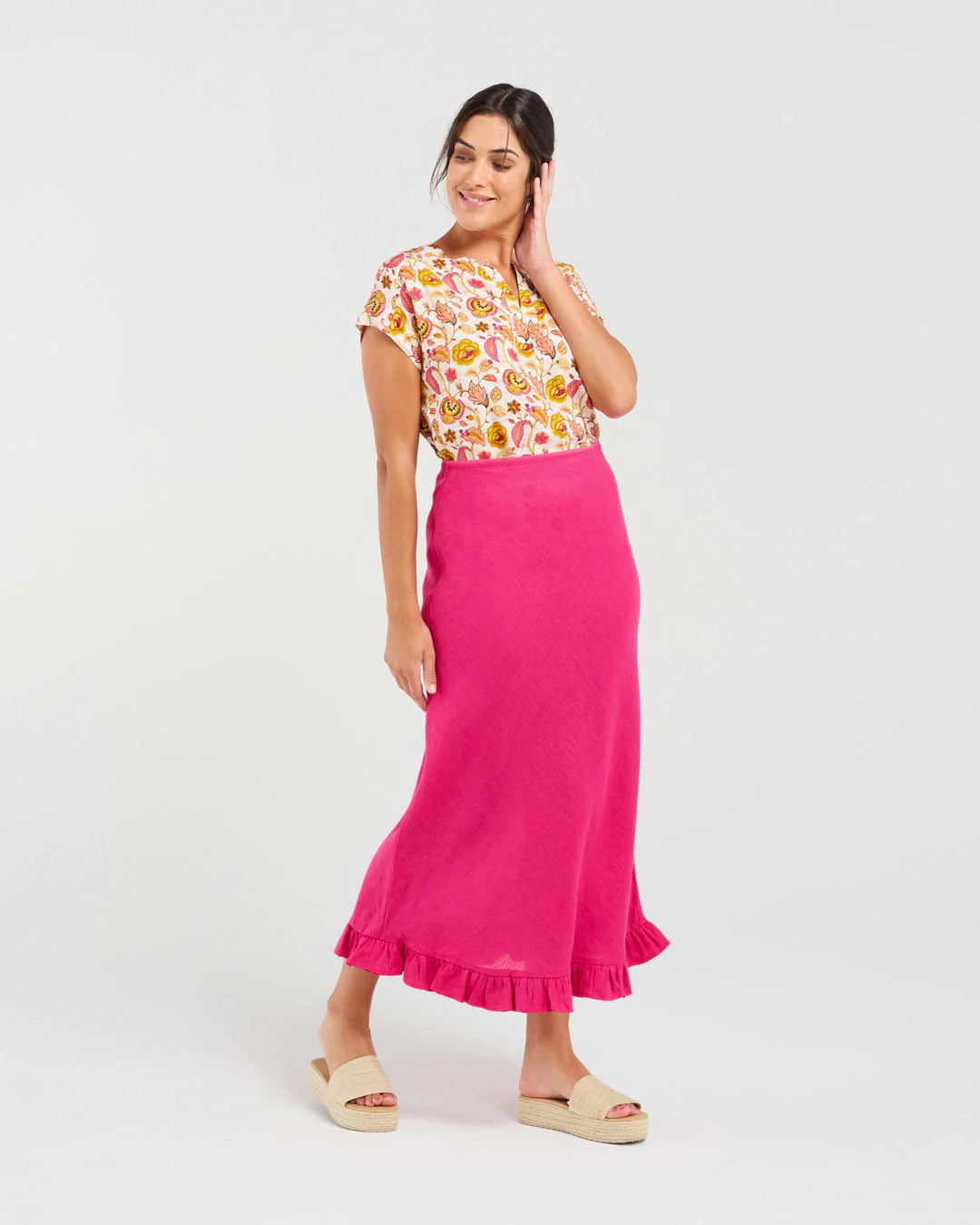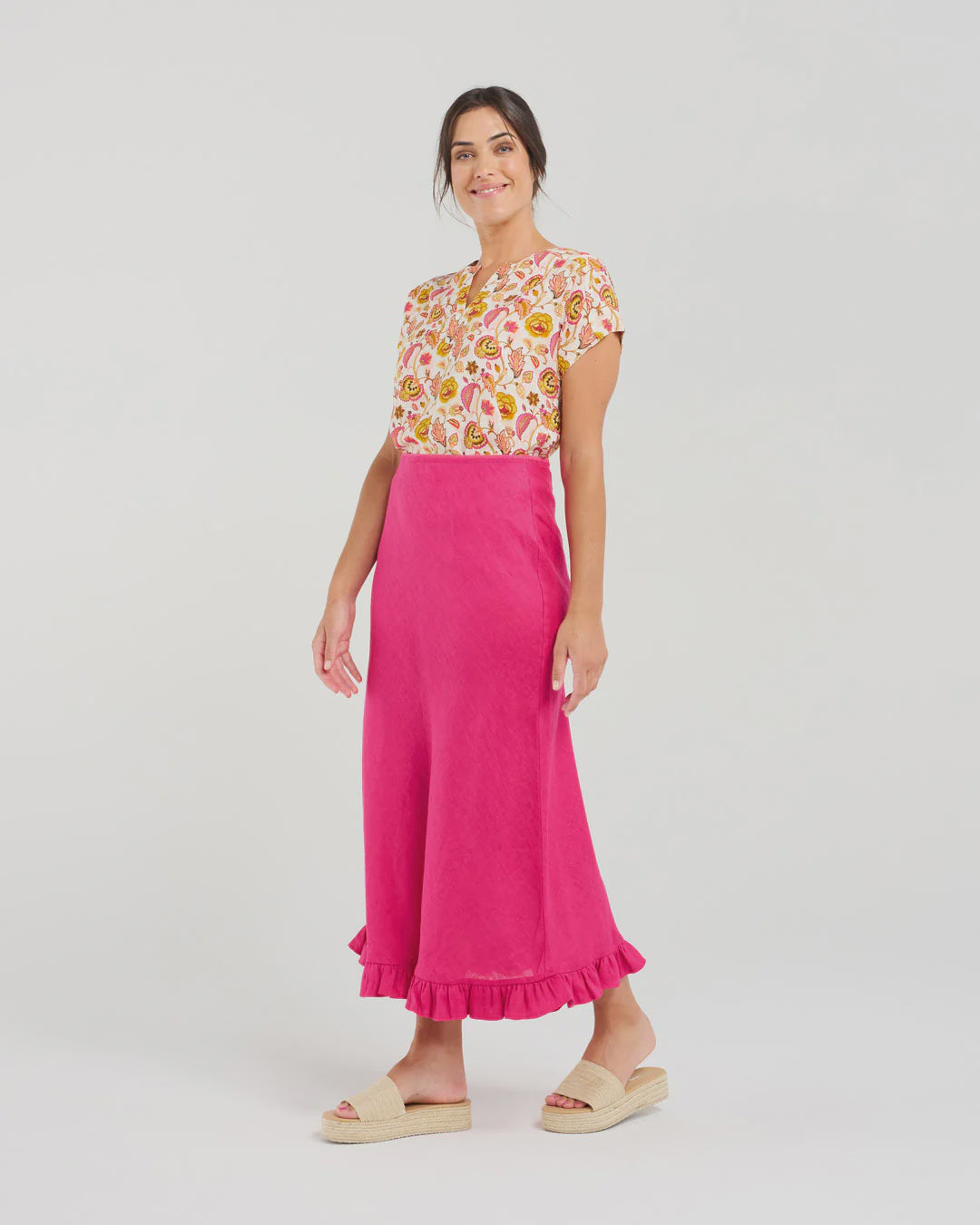 Blackstone Carine Frill Hem Linen skirt | Raspberry Sorbet