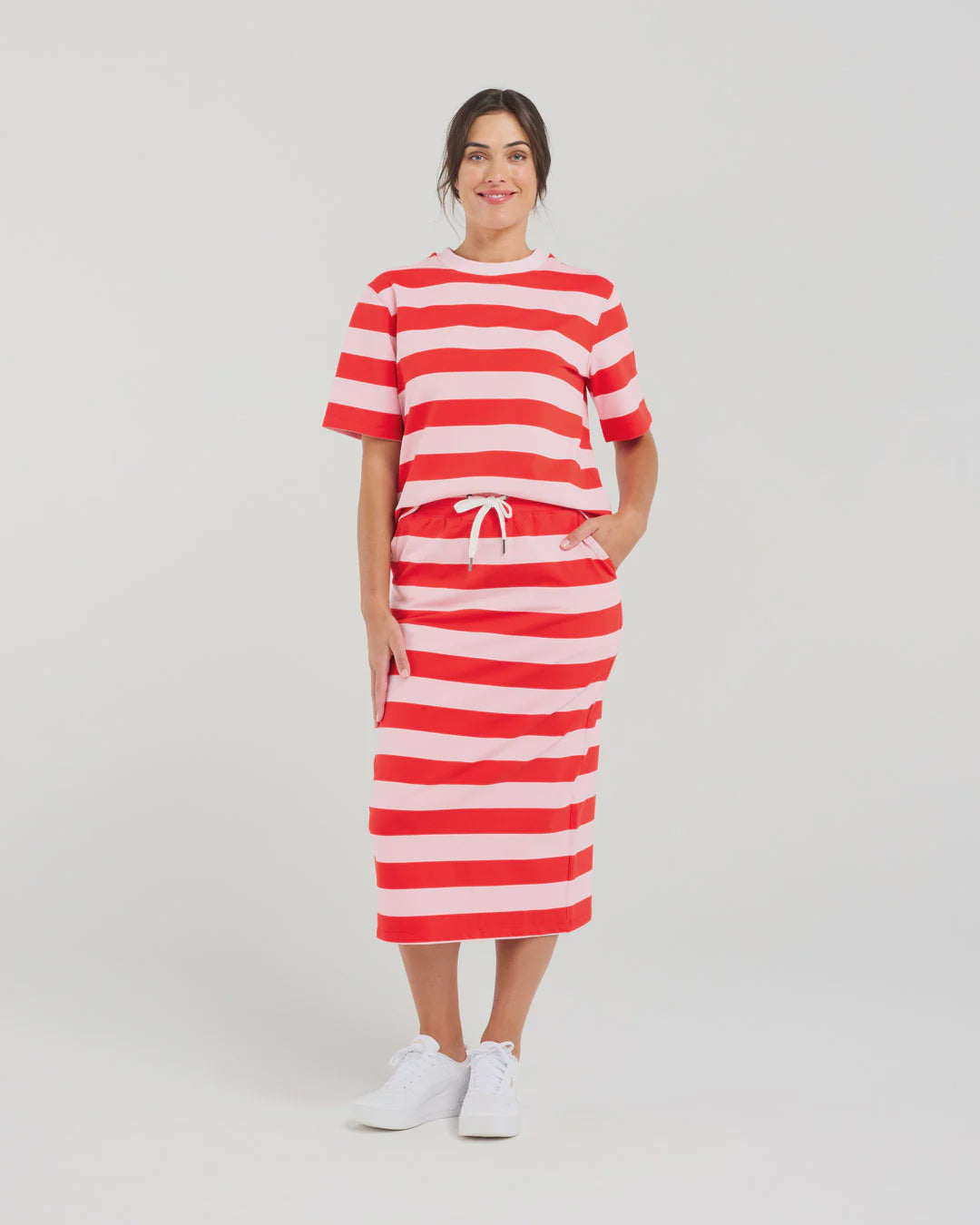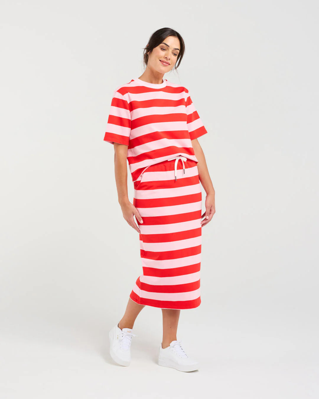Blackstone Jinique Tube Skirt | Red/Pink Stripe