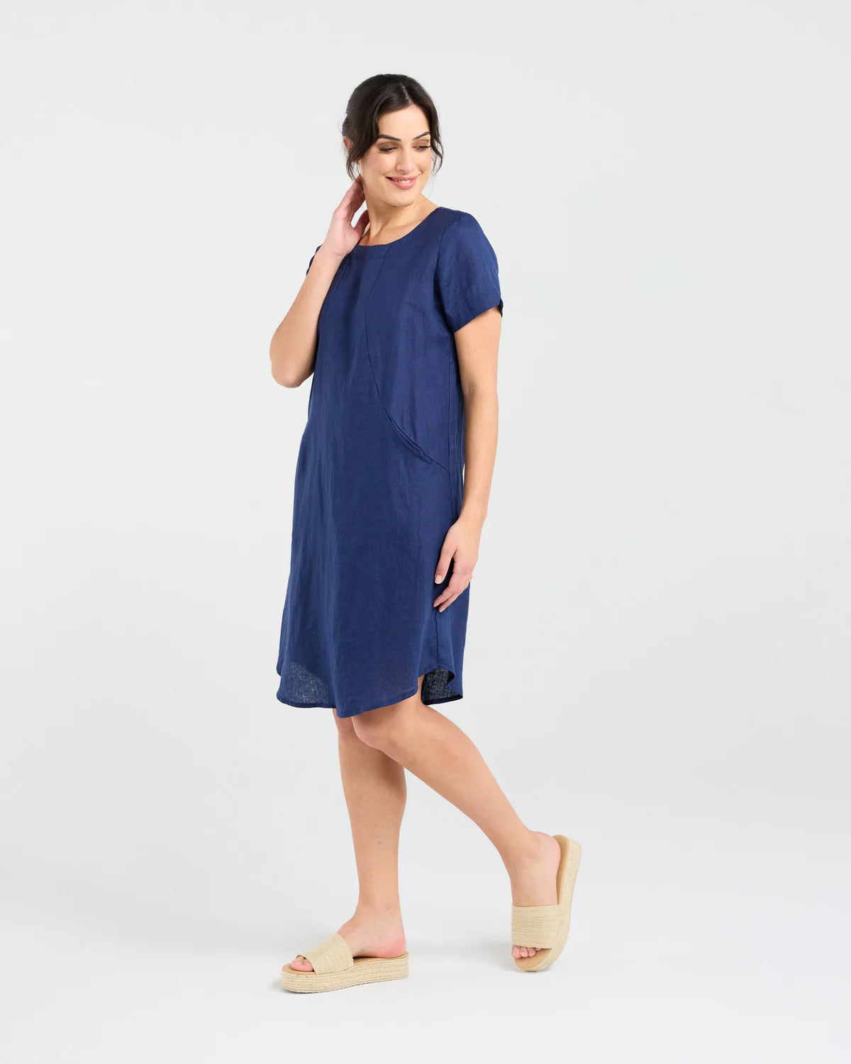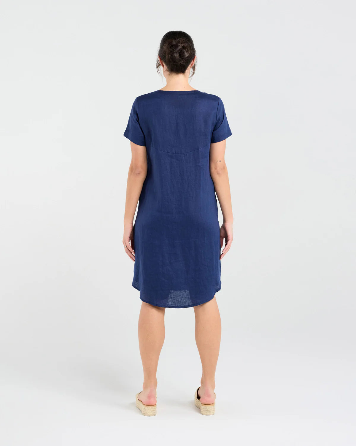 Blackstone Natacha Linen Button Back Dress | French Navy