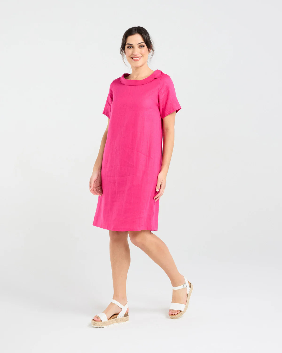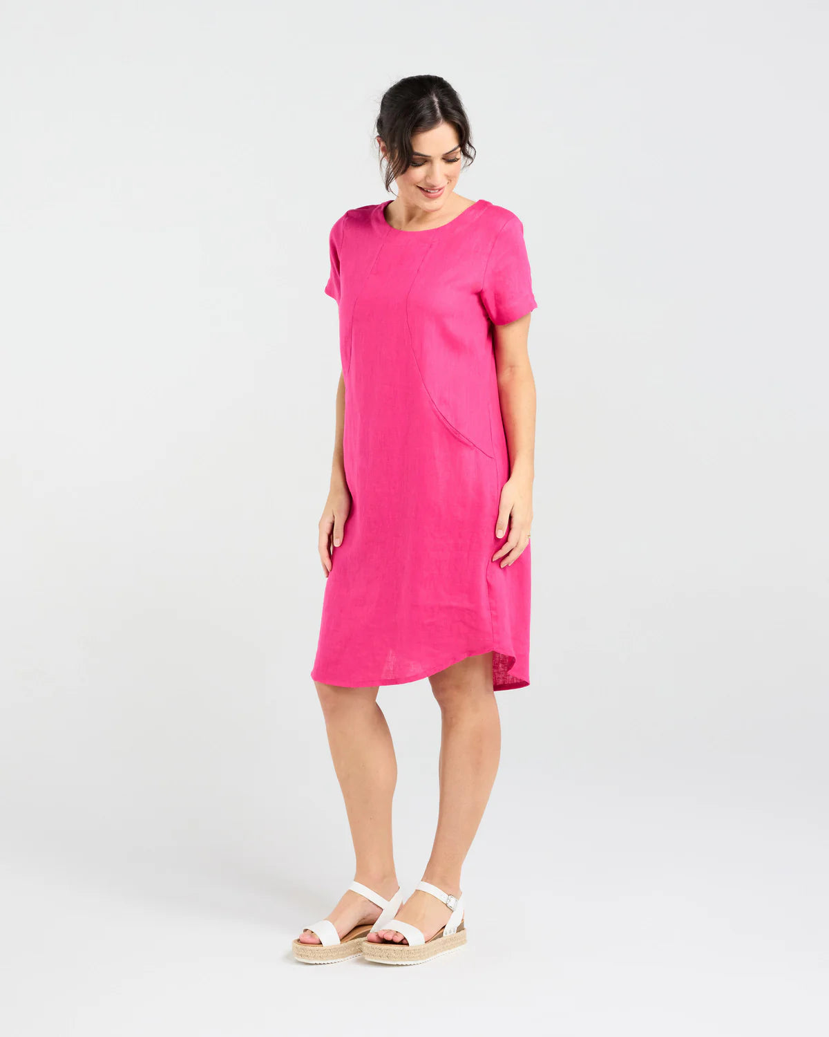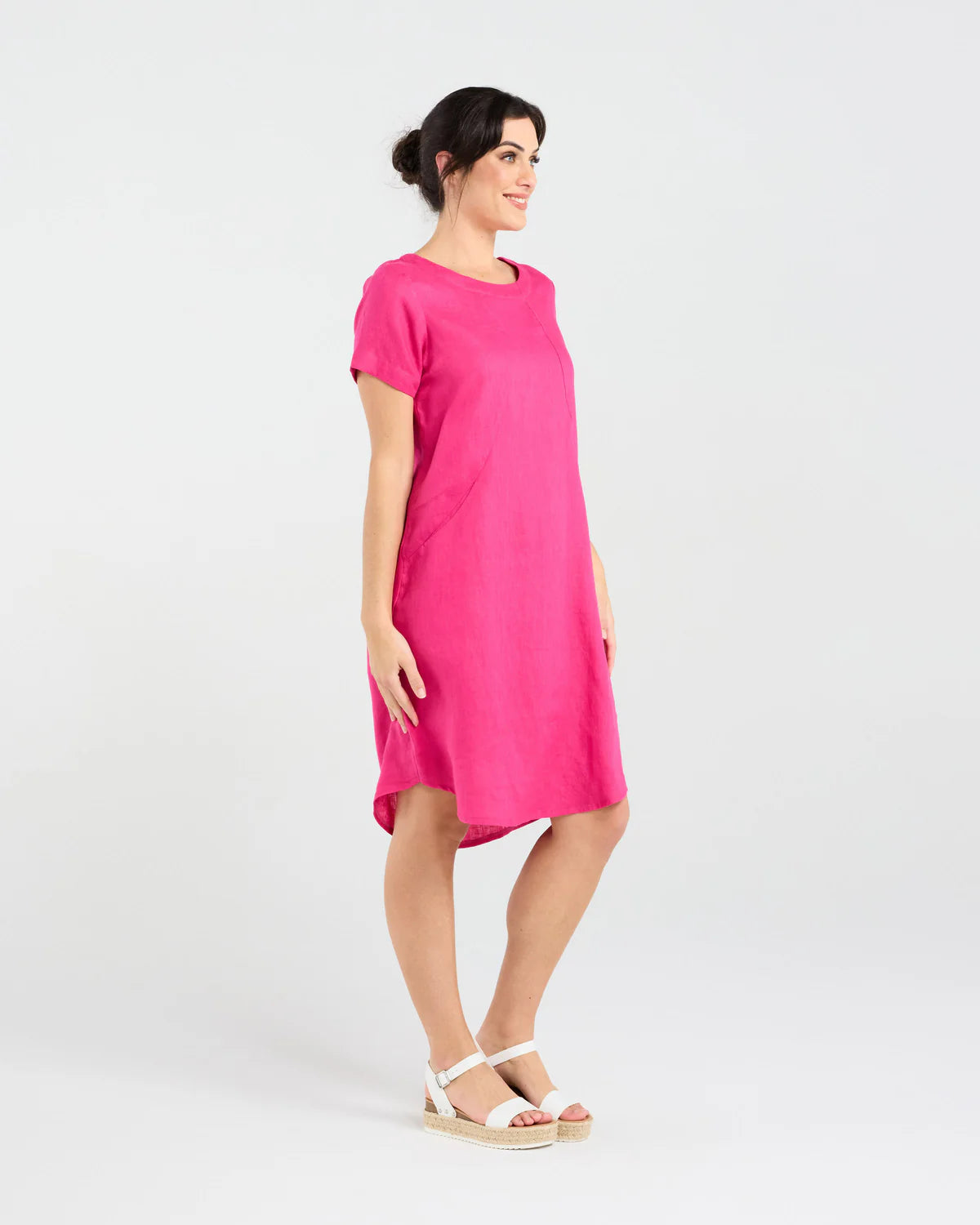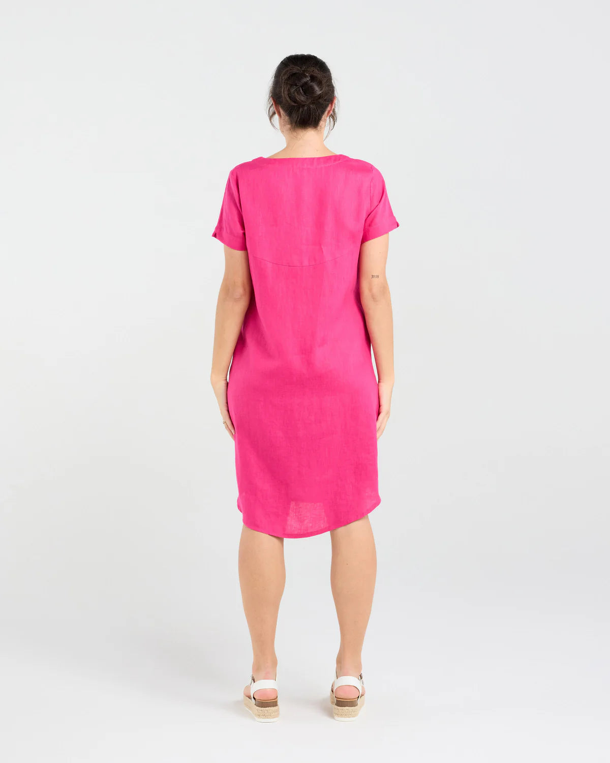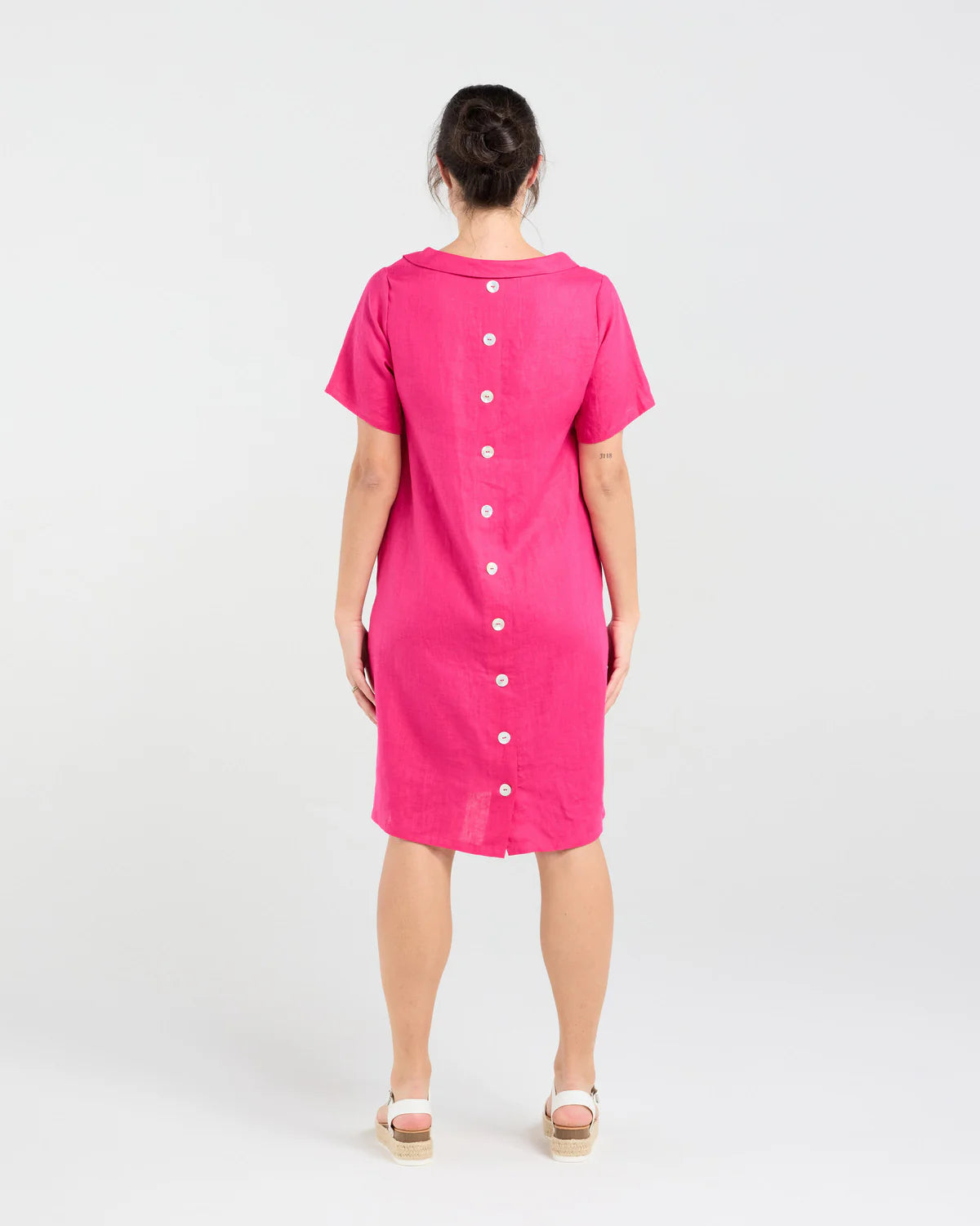 Blackstone Natacha Linen Button Back Dress | Raspberry Sorbet