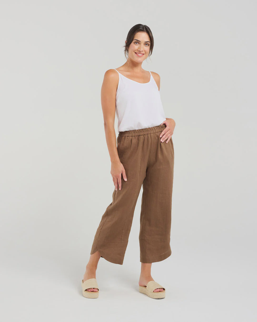 Crafted from 100% linen, these pants promise breathability and durability, making them perfect for both casual work wear and leisurely weekends. The distinct petal hem adds a touch of whimsy and movement. Embrace a blend of sophistication and playful charm with the Arabella Petal Hem Pant.