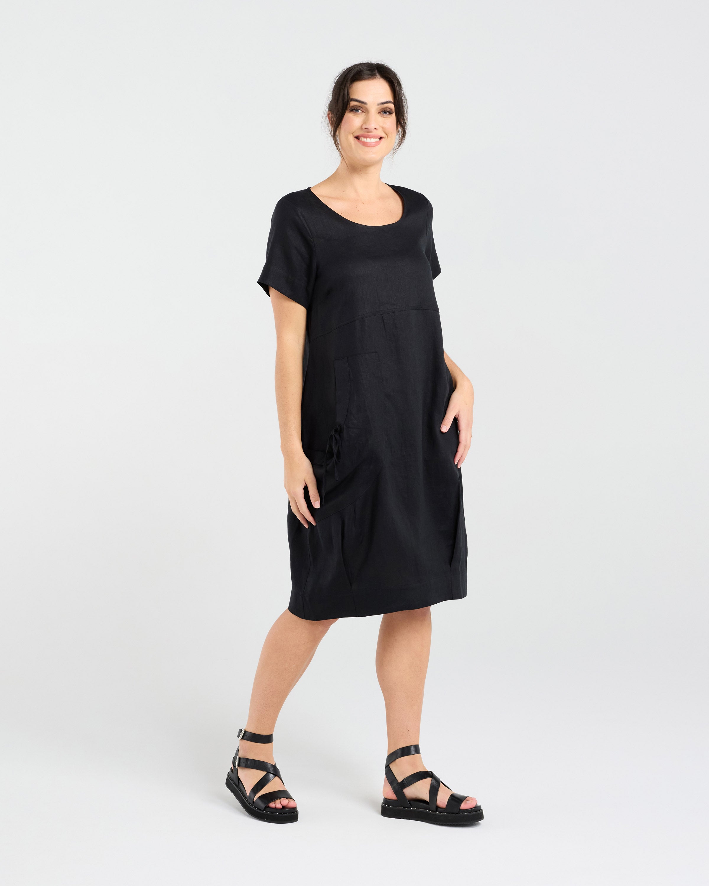 Blackstone Lilian Linen Bubble Hem Dress | Black