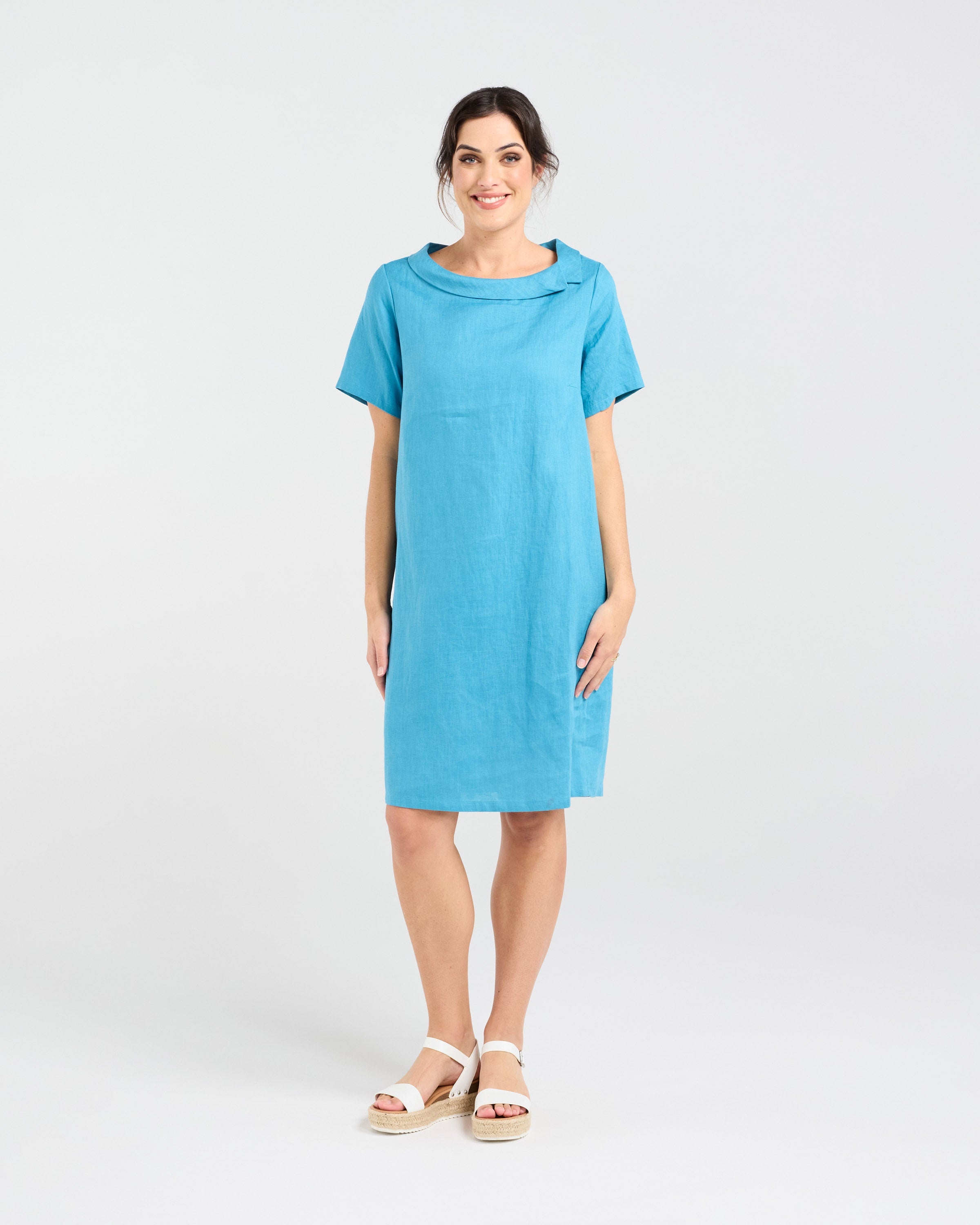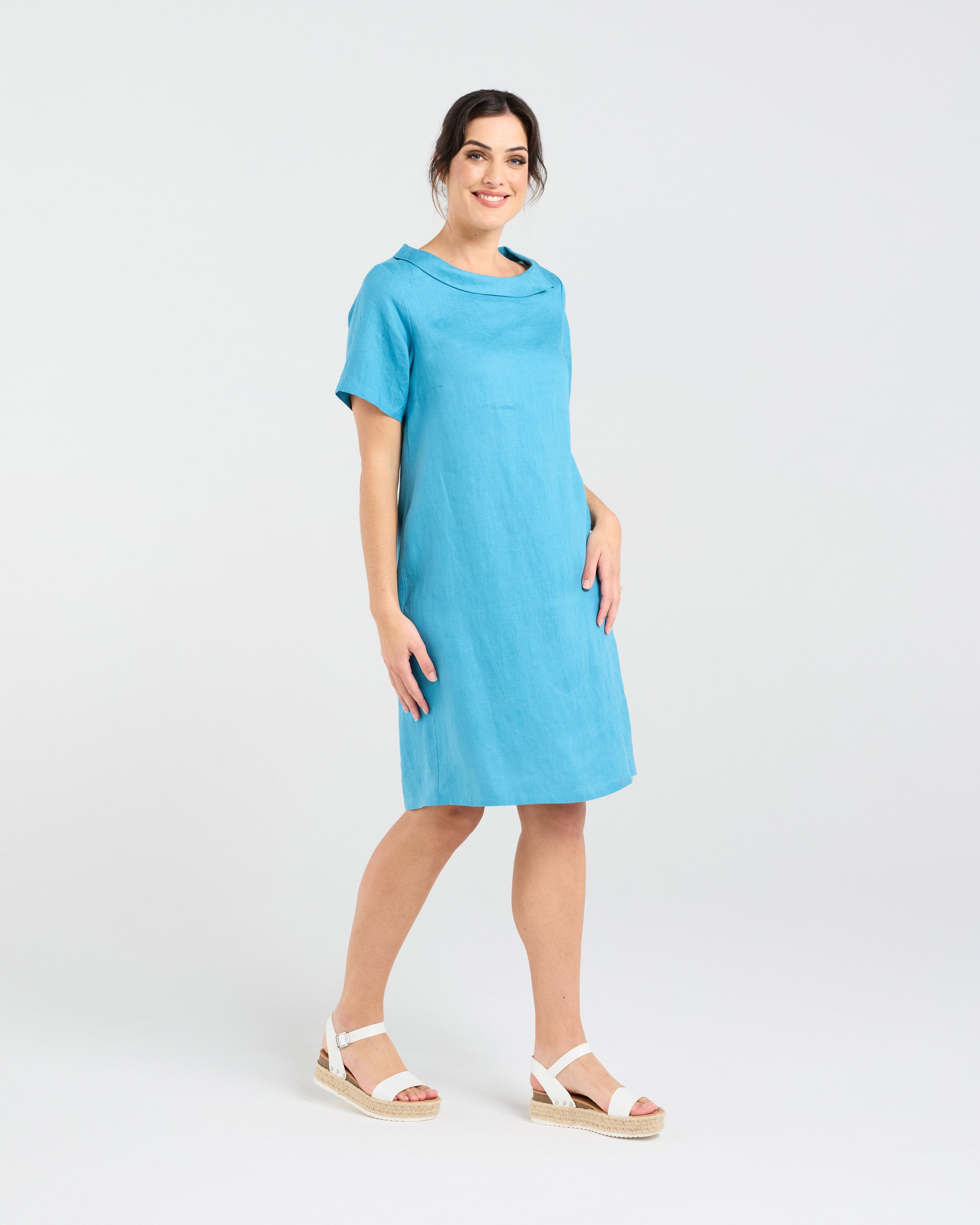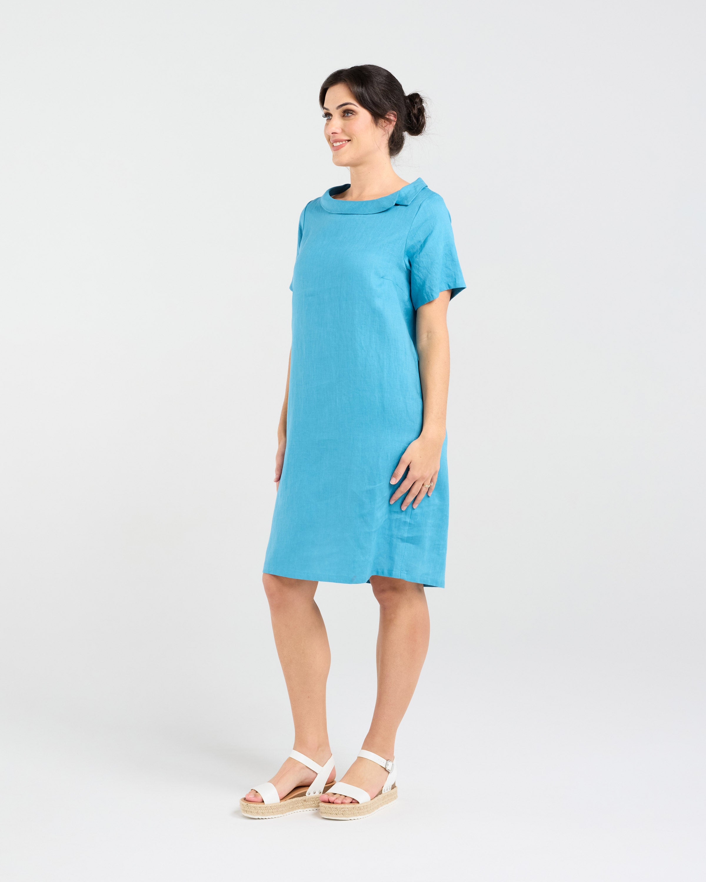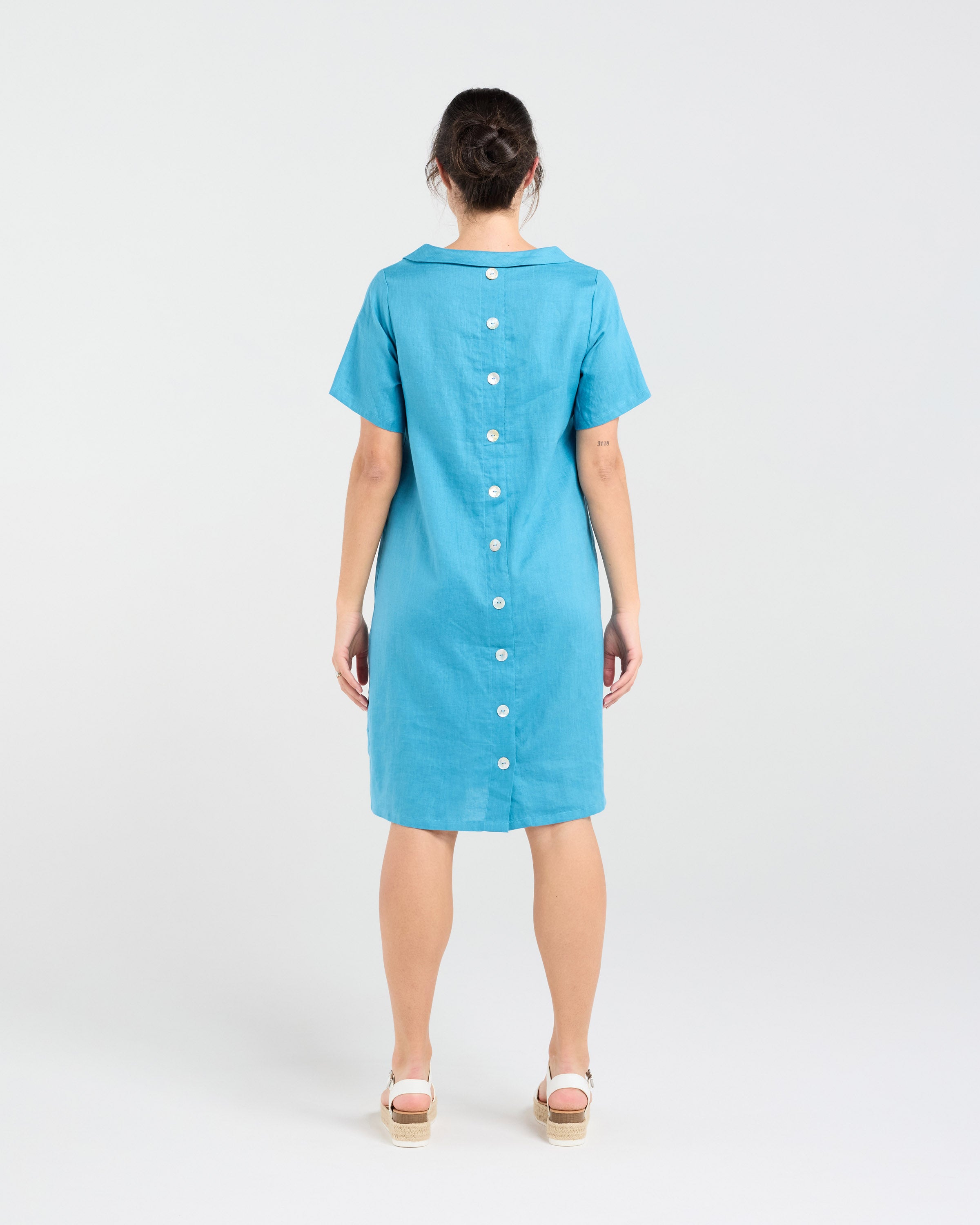 Blackstone Natacha Linen Button Back Dress | Mosaic Blue