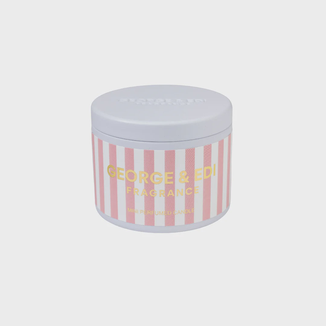 GEORGE & EDI Mini Perfumed Candle is crafted in New Zealand from a natural wax blend with a cotton braided wick and phthalate free fragrance in a handy tin with a lid