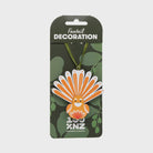 Bring a little Kiwi magic to your Christmas tree with this handmade wooden decoration. Printed on both sides in vibrant colour and finished with a ribbon, each piece measures approximately 60 x 70mm