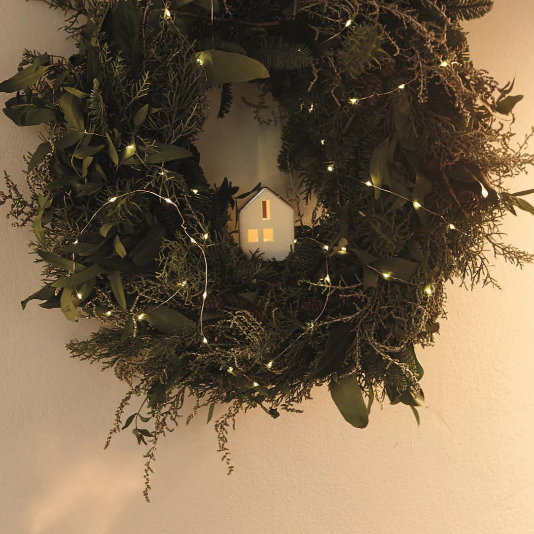 Tiny Village House Minis with Gold Roof and LED Light are small enough to be added to your greenery or wreaths or sit perfectly among your holiday decor for cozy lighting and perfect ambience. Mini Village Houses are lit with an LED module and include (2) LR44 batteries.