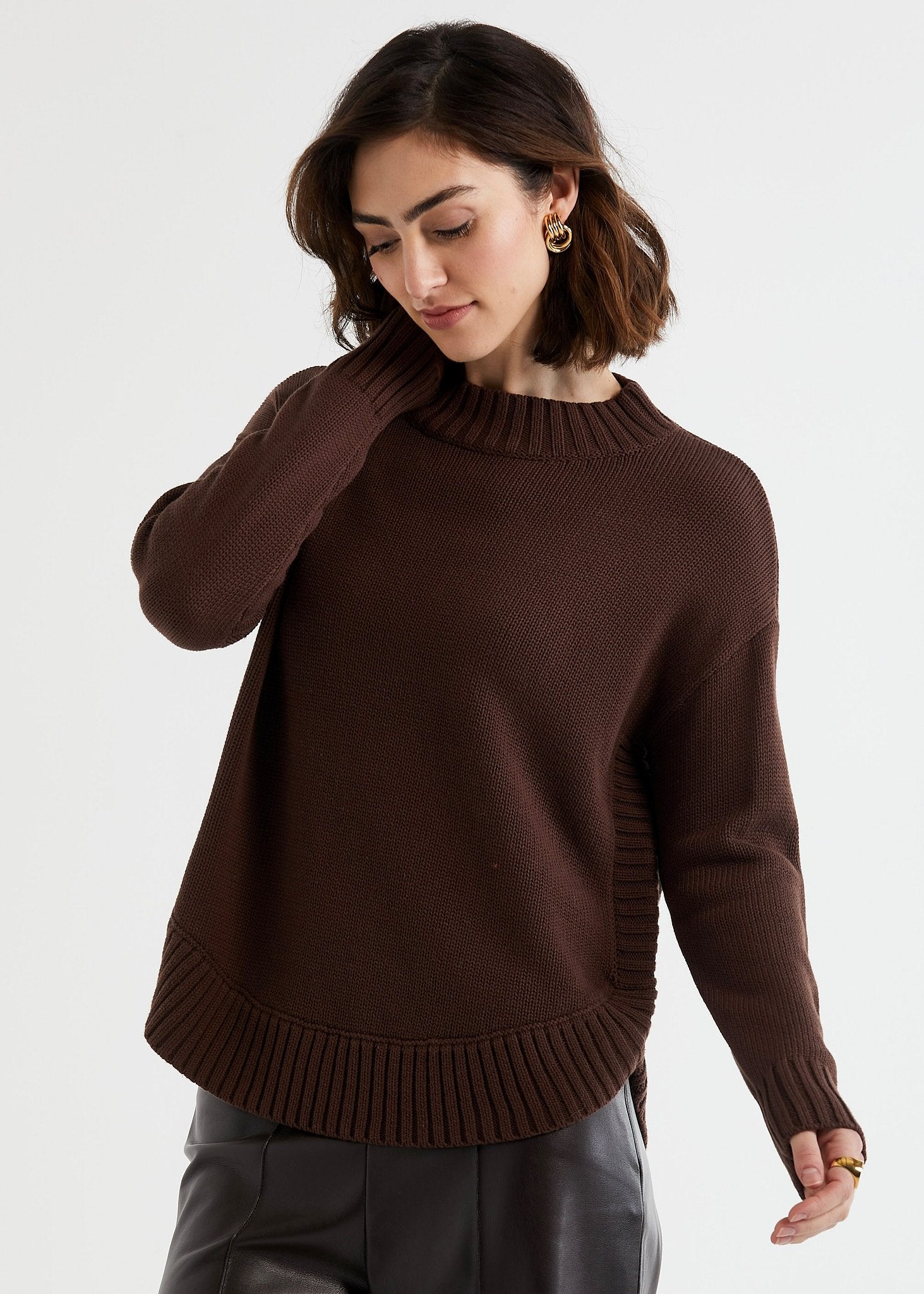 Introducing the Cotton Mock Turtle from LD & Co. This thick, cosy 100% cotton knit features a ribbed mock turtleneck to keep you warm all winter. With a subtle A-line fit and a shirt-style hem that’s slightly longer at the back, this jumper combines comfort and style. The dropped shoulder design adds a relaxed, contemporary touch to this timeless piece.