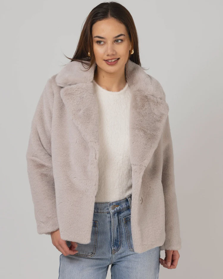 The Stella + Gemma Britta Fur Jacket is the ultimate statement piece for effortless winter styling. Made from plush faux fur, this fully lined jacket features a classic open-front design, side pockets, and a relaxed fit for all-day comfort. Perfect for layering over any outfit, from casual denim to evening wear.