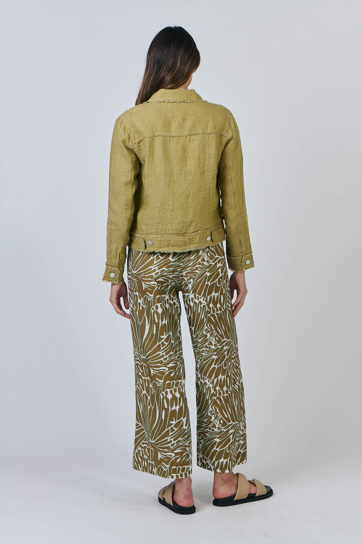A jacket that will pair with just about anything, it features a point collar, raw edges, buttons all the way down, and two breast-pocket flaps. Made from 100% linen, this is a versatile, lightweight jacket.