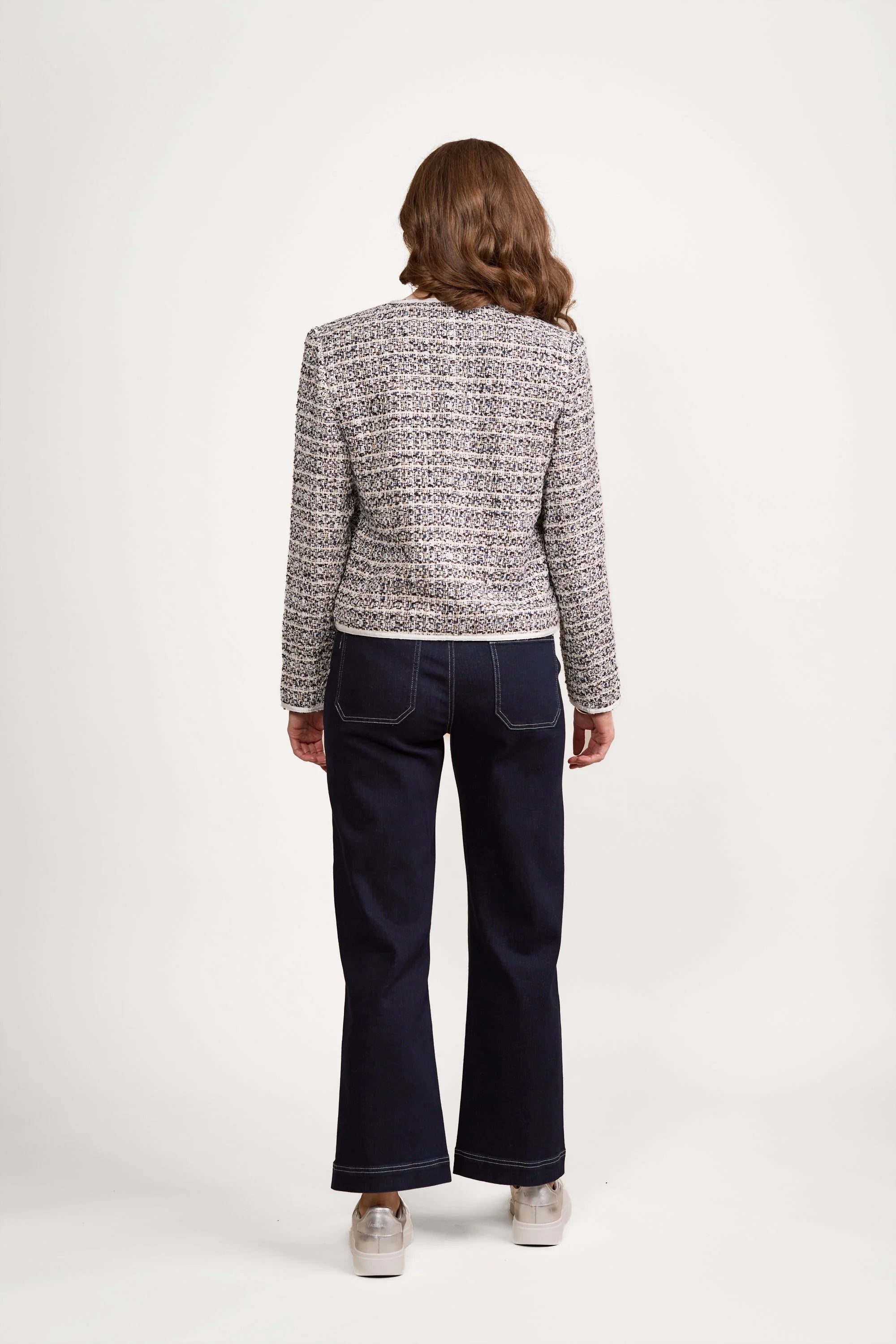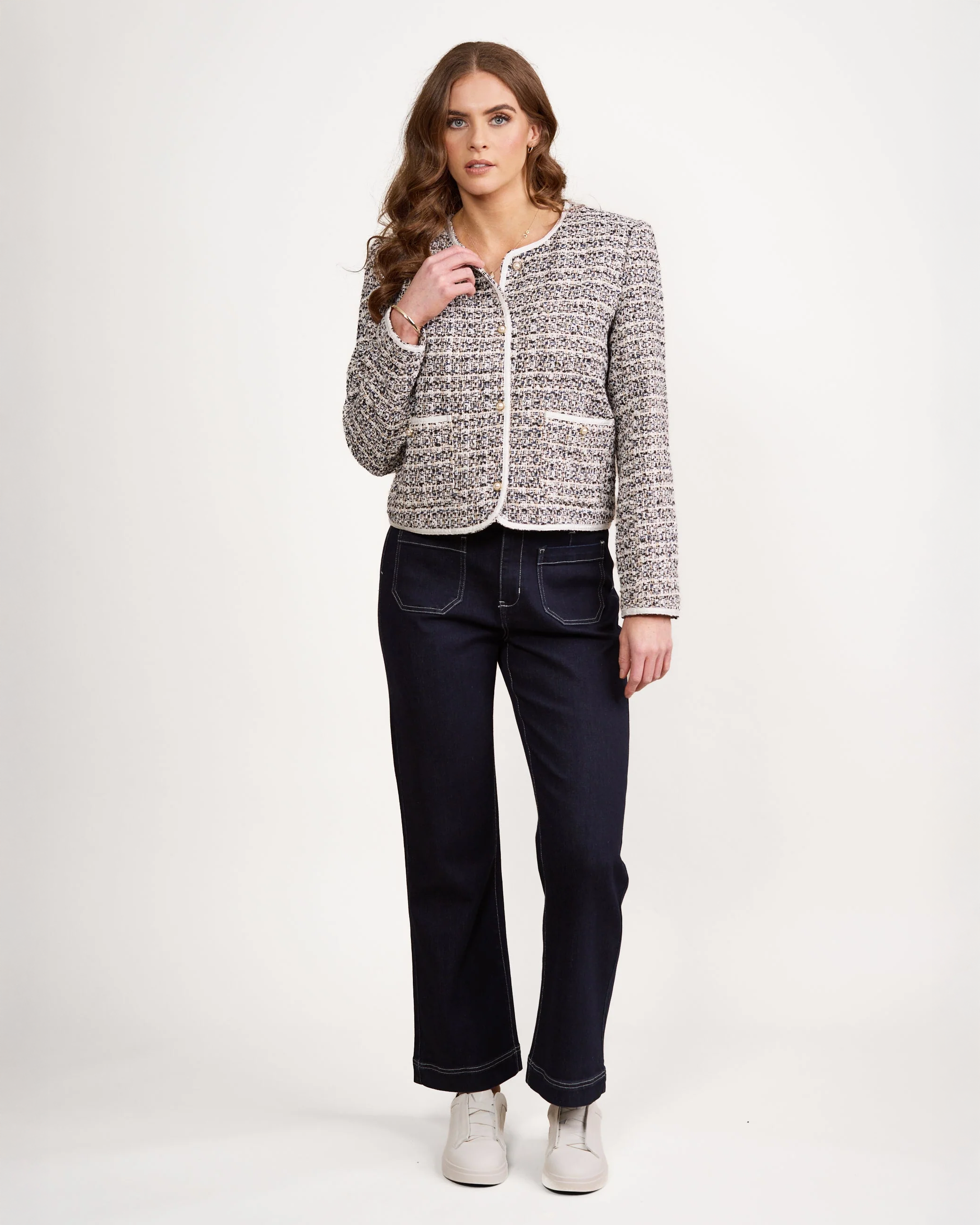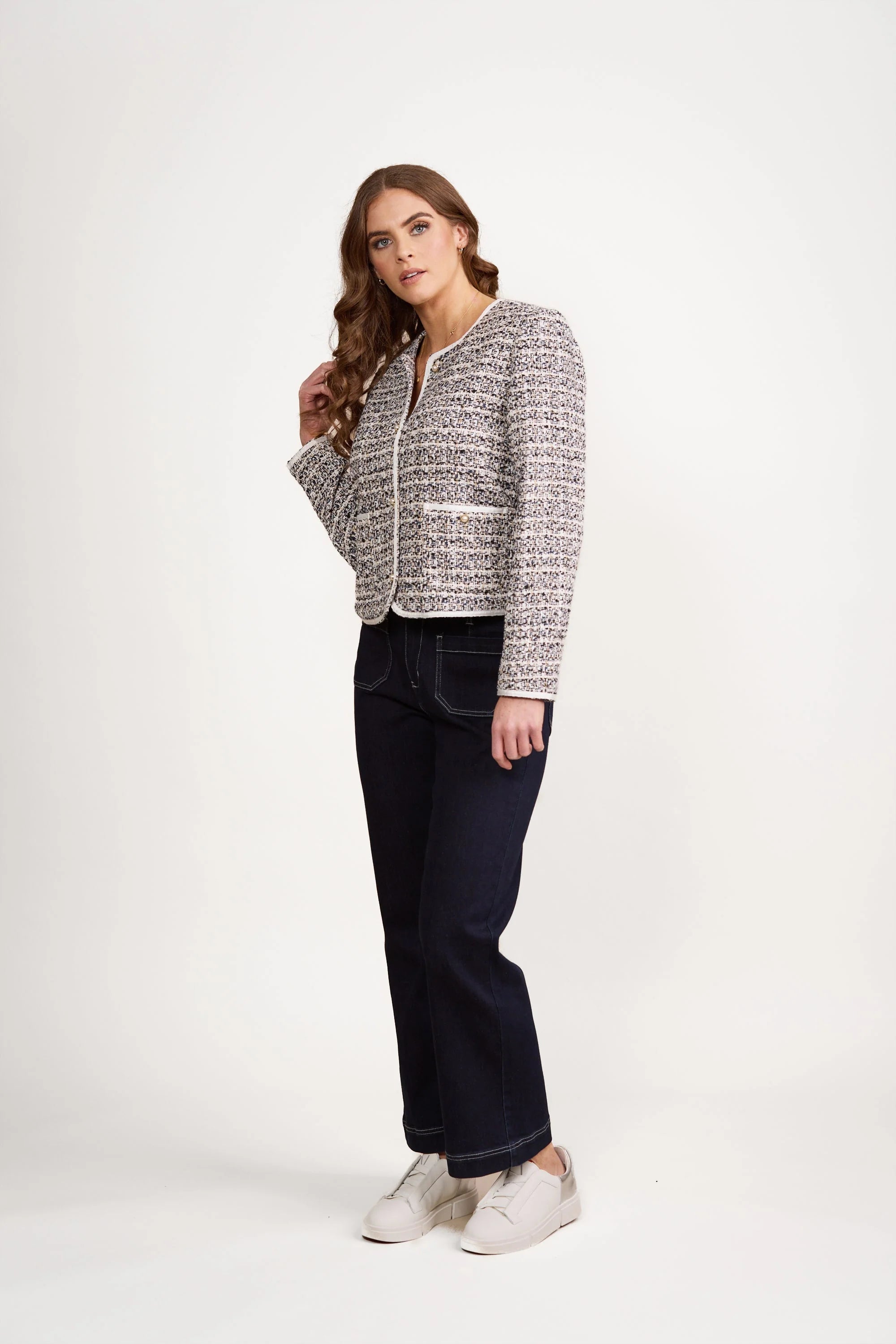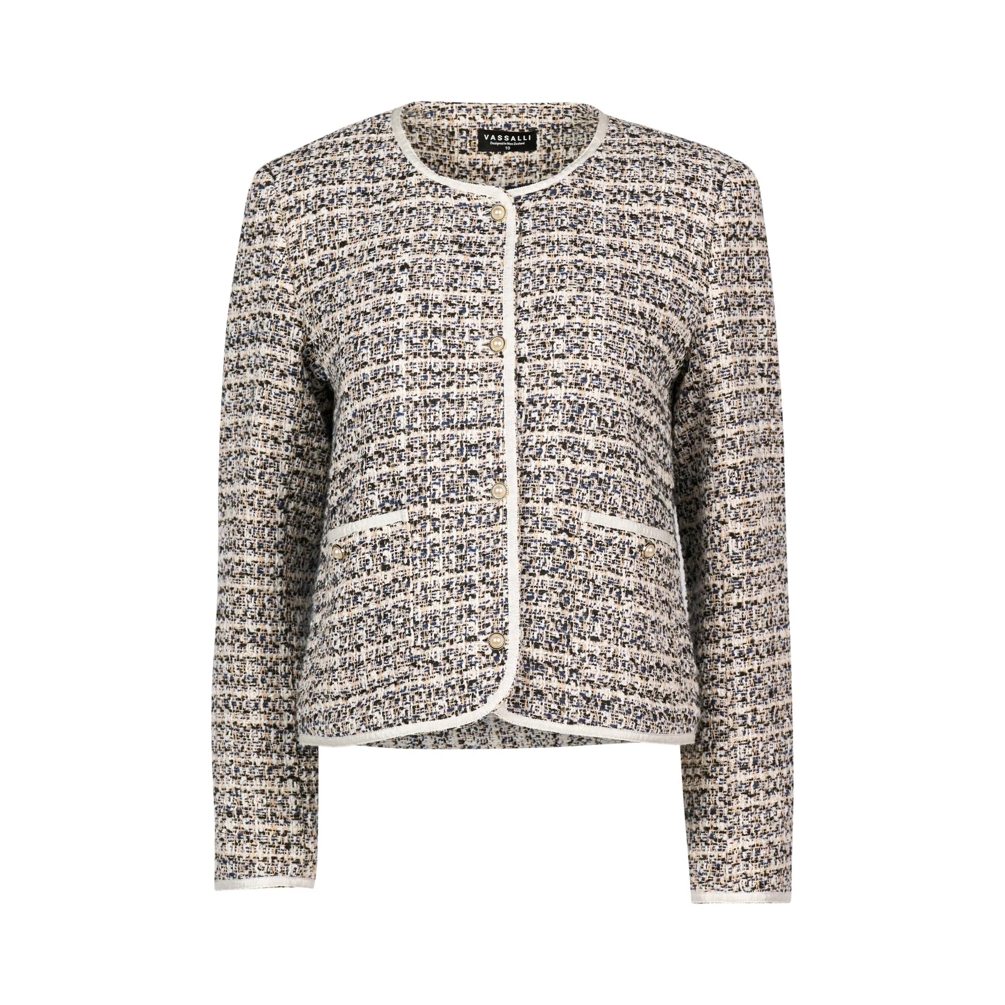 - Vassalli Short Collarless Lined Jacket with Trim Detail