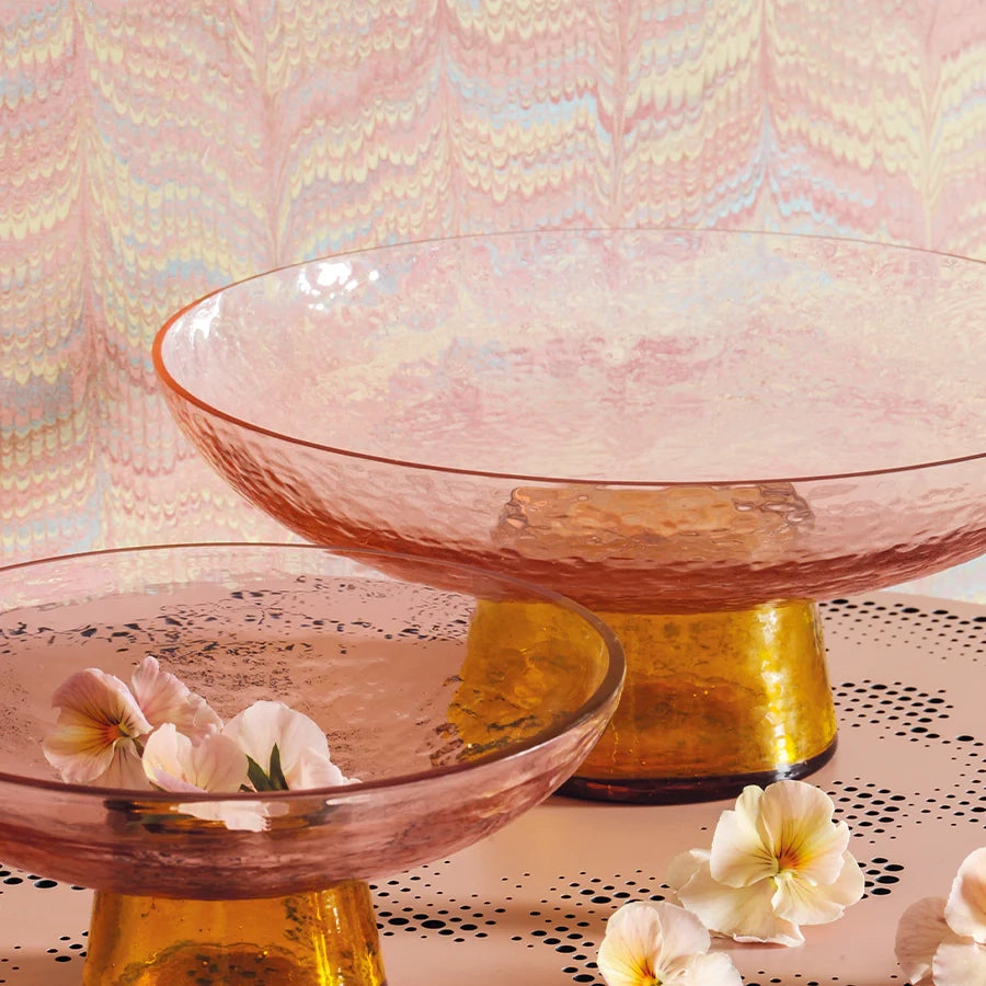 Add height and grandeur to your table setting with our hammered, recycled glass pedestal bowls. These look divine as fruit bowls on the kitchen bench, or as a statement bowl. Available in two sizes with a two tone colourway bowl and base.