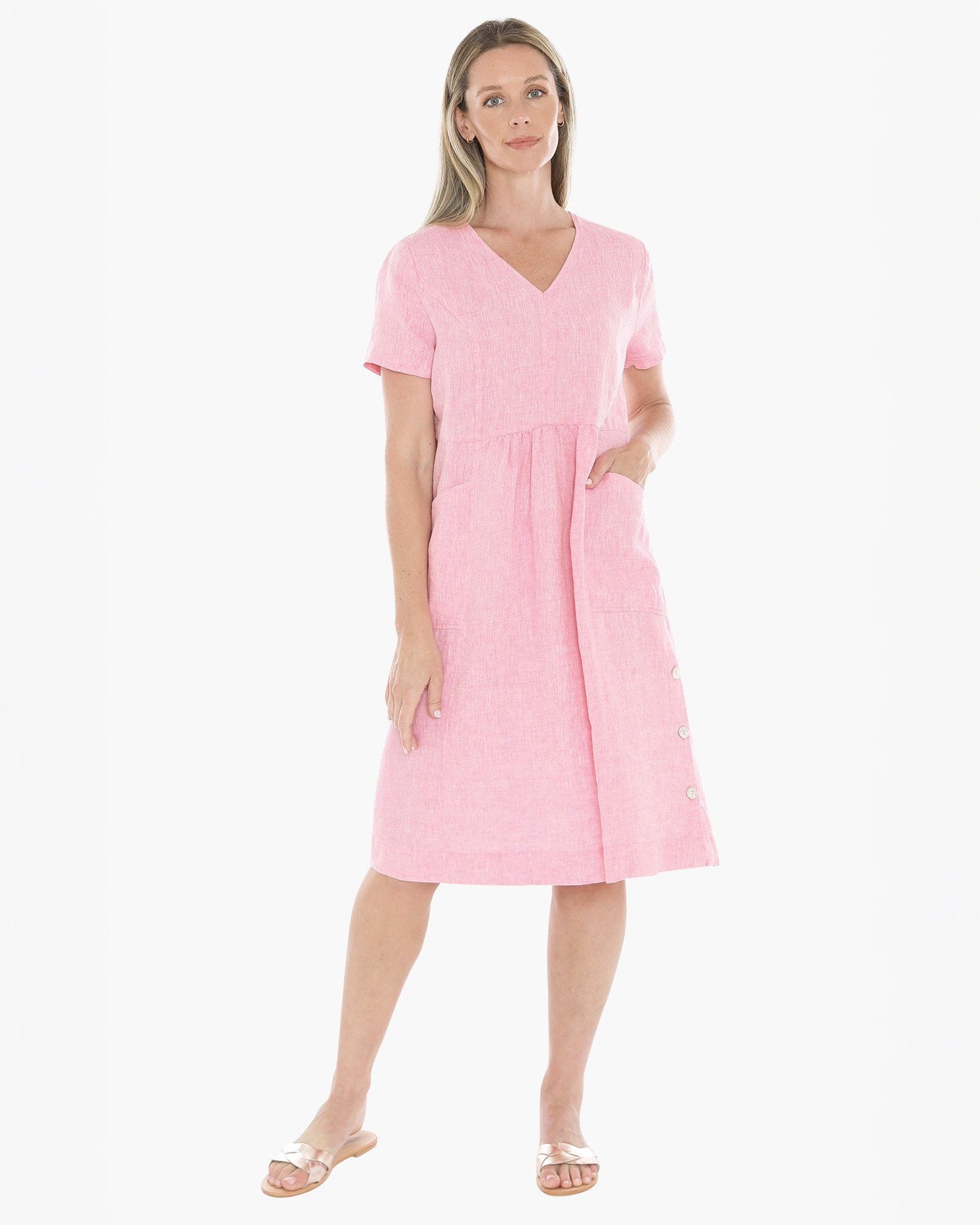 The Side Button Dress is a casual essential, crafted from breathable linen for a lightweight, effortless feel.