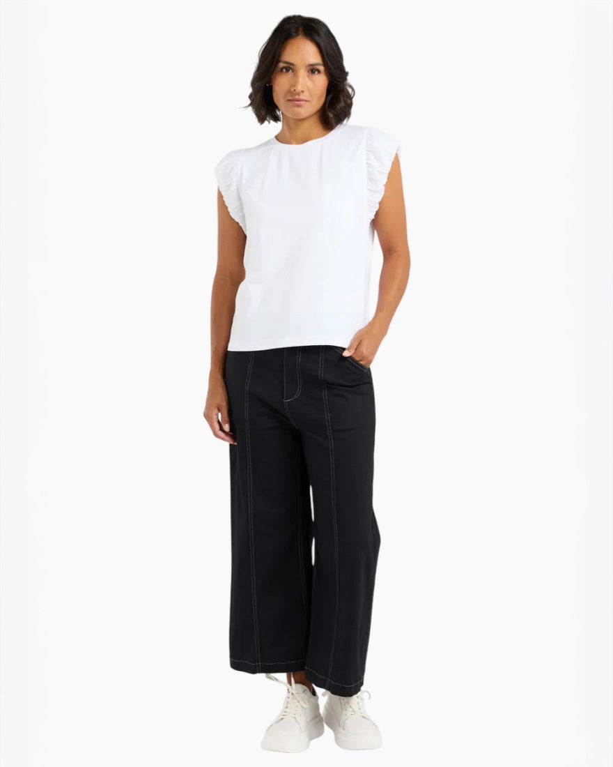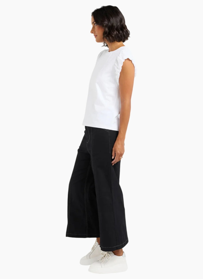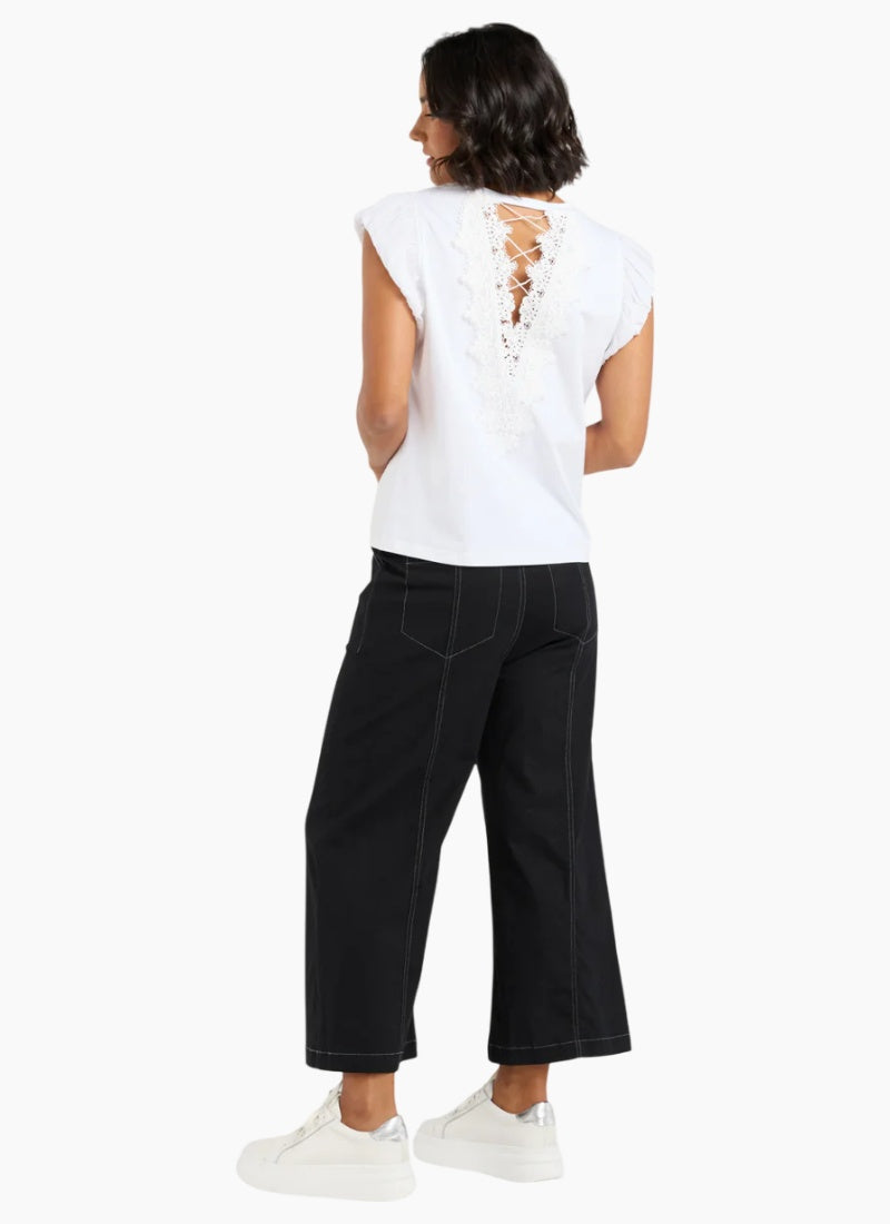 This elevated tee redefines everyday ease with a touch of unexpected elegance. Cut in a refined silhouette from a soft, premium cotton blend, it features a striking lace panel at the centre back—adding a layer of delicate texture and feminine contrast. The clean front keeps the look understated, while the intricate lace detail offers a moment of surprise and sophistication from behind. Effortless from every angle.