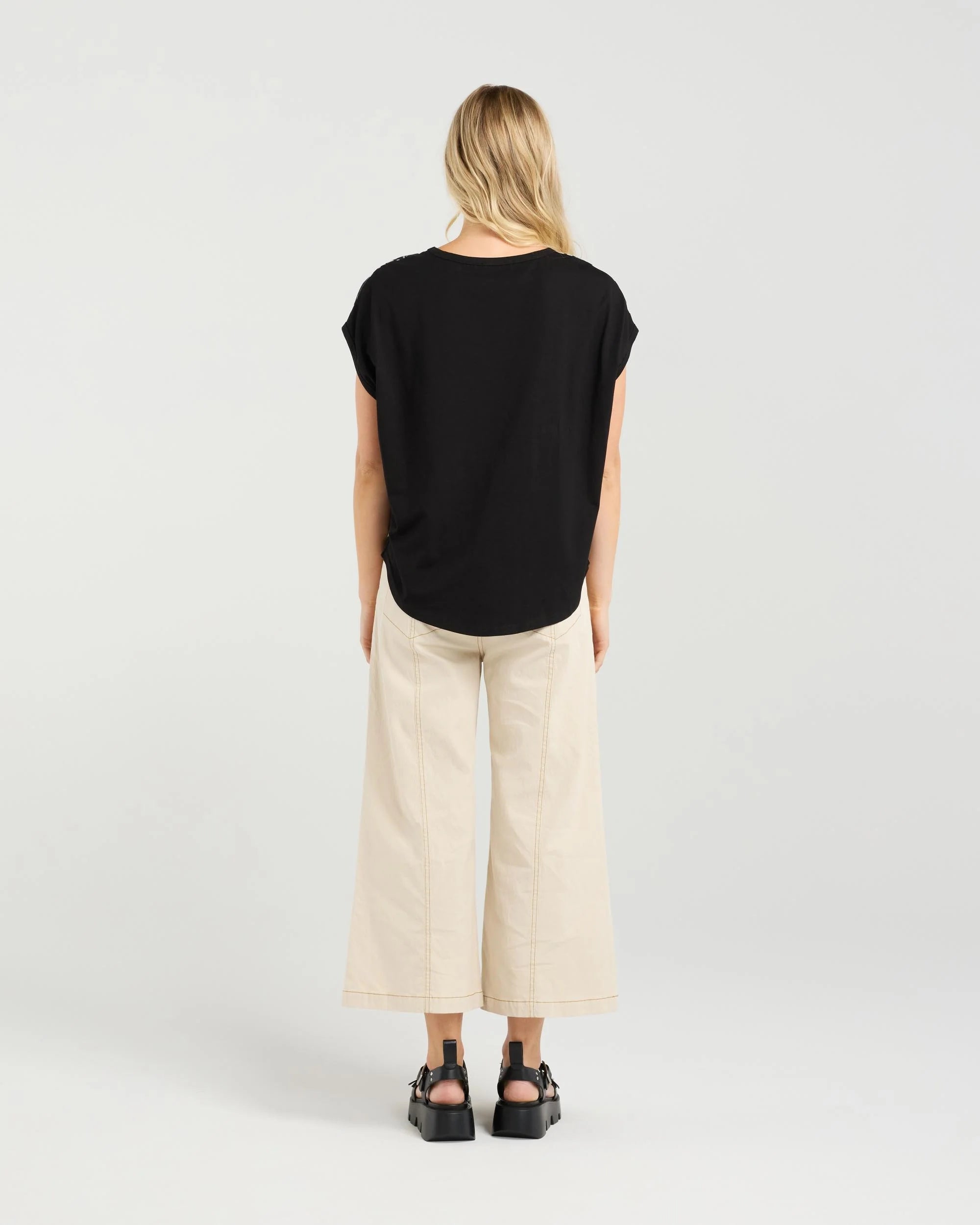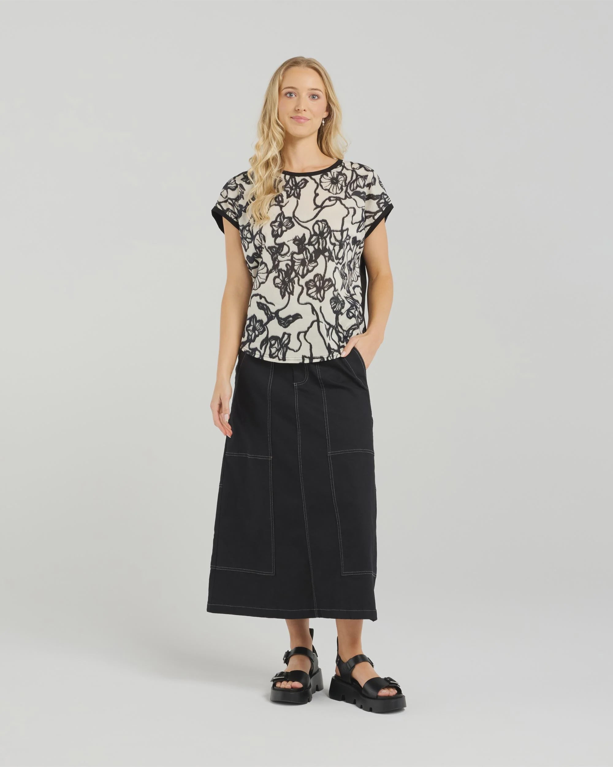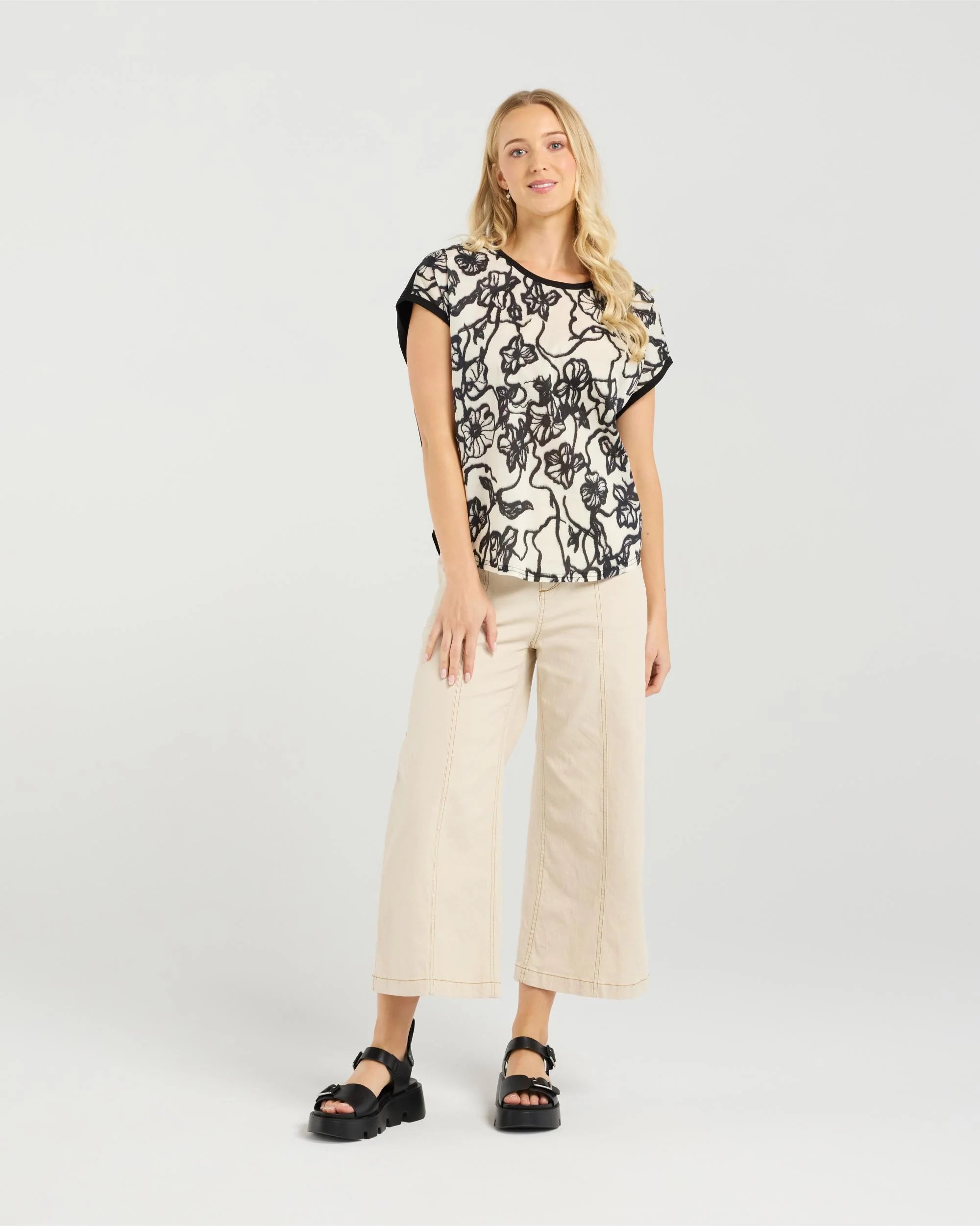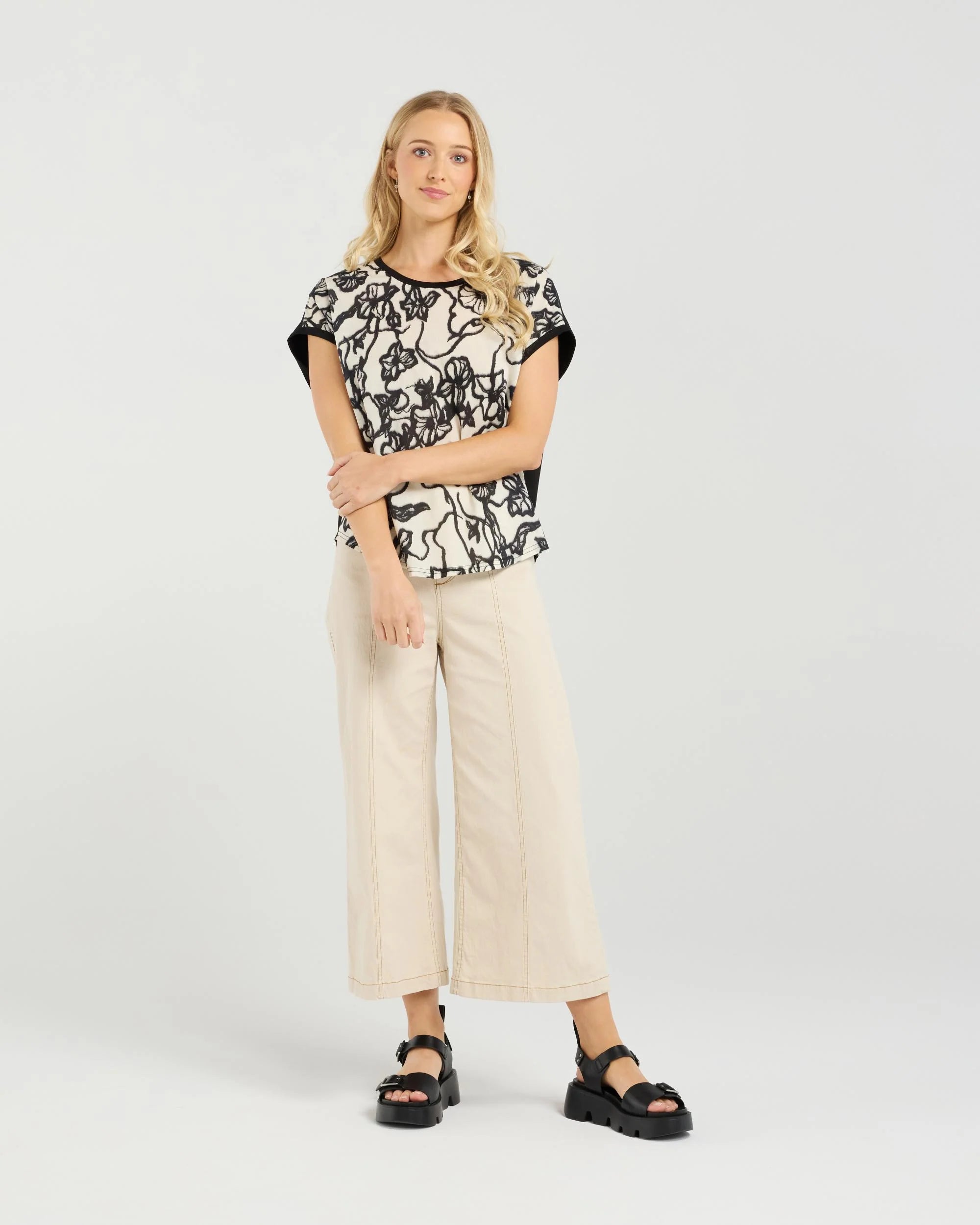 Cute and casual with a point of difference, the Tatum Top gives you the comfort and ease of a t-shirt with its Cotton Spandex back and the added luxury  of the gorgeous Street Blossoms print on the front . This is perfect back with jeans or shorts for everyday summer style or with a pair of dress pants for work and occasion dressing.