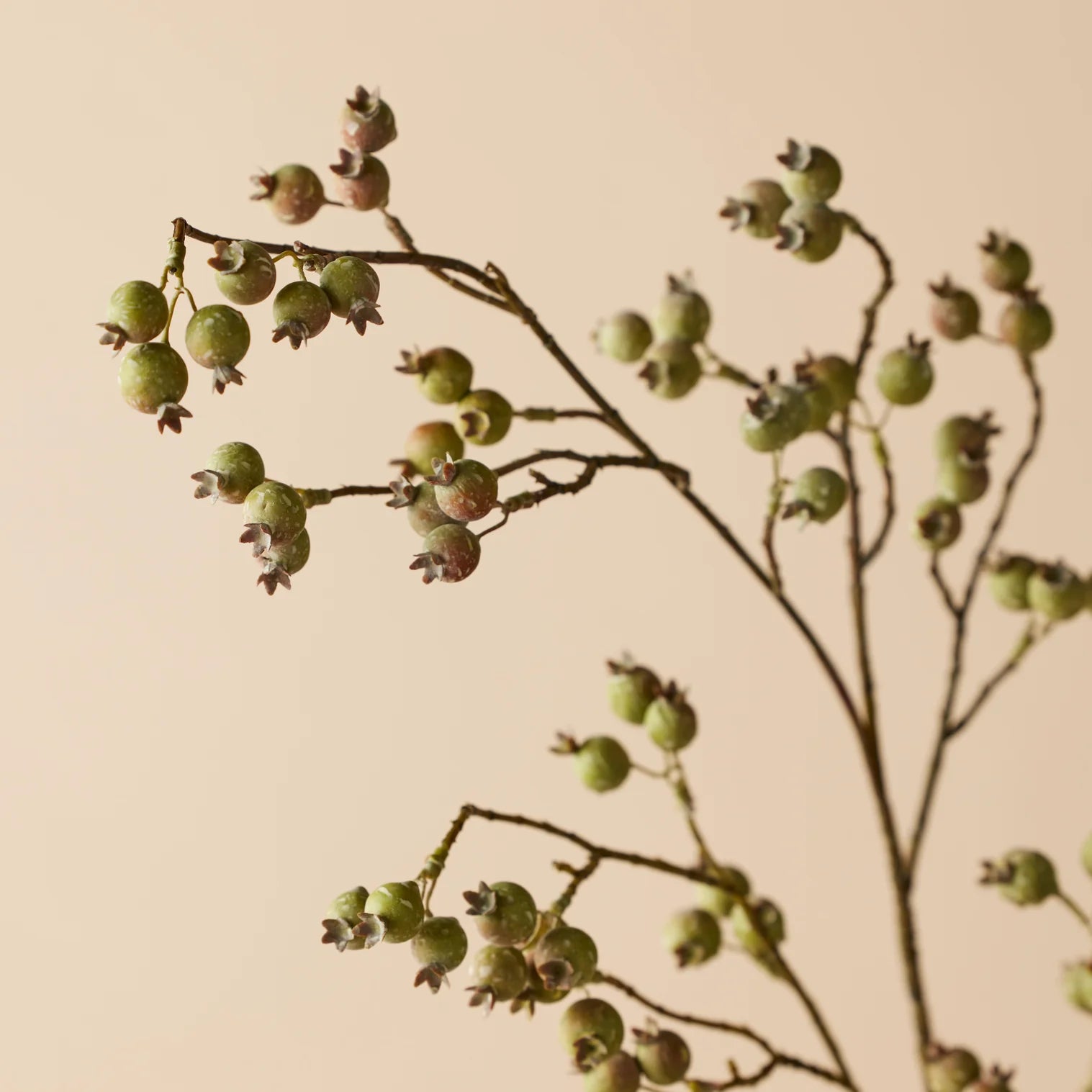 With remarkable attention to detail, it displays beautiful green wild berries on a sturdy green stem. It will last for years to come with no fuss. Place as is in a vessel or vase, or combine with floral and foliage stems to create your bespoke bouquet.