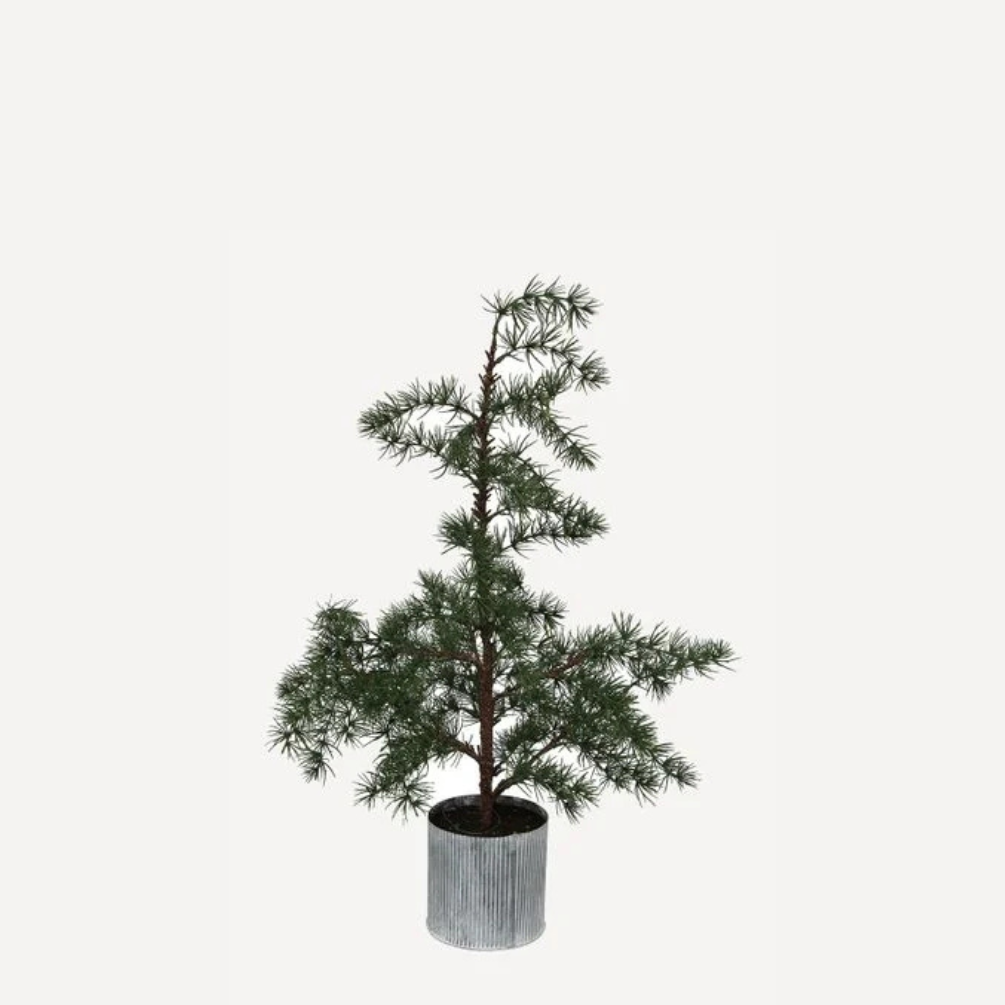 A traditional nordic tree with delicate needles and realistic branches sits in a galvanised zinc pot to add a touch of vintage charm to your decor.