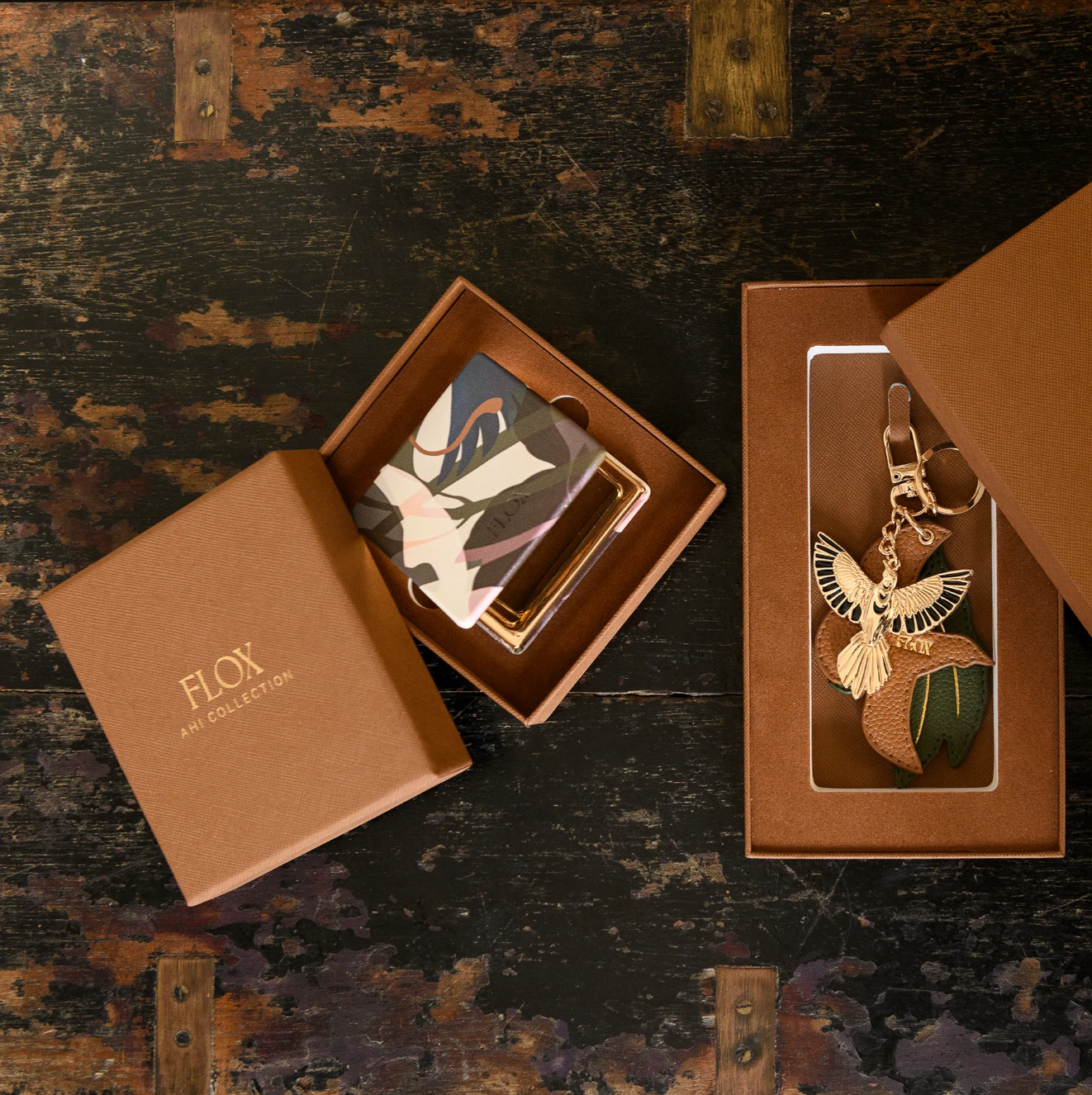 Designed for beauty on the go, the Ahi Compact Mirror is both practical and effortlessly chic. Wrapped in printed vegan leather featuring a signature FLOX artwork, this stylish essential fits seamlessly into any bag. Inside, one regular and one magnifier mirror ensure you’re always ready for a quick touch-up. With an easy snap-close design and elegant gift box packaging, it’s a perfect treat for yourself or someone special.