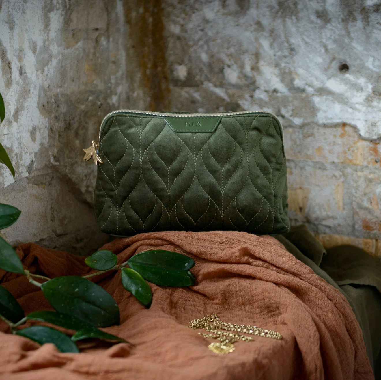 A statement in both luxury and function, the Ahi Velvet Cosmetic (Medium) offers refined elegance with a practical edge. Featuring a sumptuous quilted velvet exterior with intricate leaf stitching, this case caters for a touch of both artistry and nature in every detail. Finished with a custom leaf zip pull and a signature FLOX satin interior, this little number is designed to keep your beauty essentials effortlessly organised—whether at home or on the go.