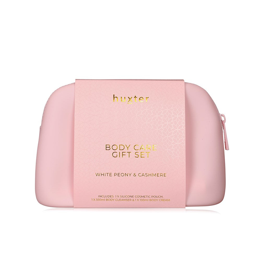 Each Gift Set Includes – 1 x 100ml Body Cleanser and 1 x 100ml Body Cream in White Peony & Cashmere and 1 x Silicone Cosmetic Bag in Pink.