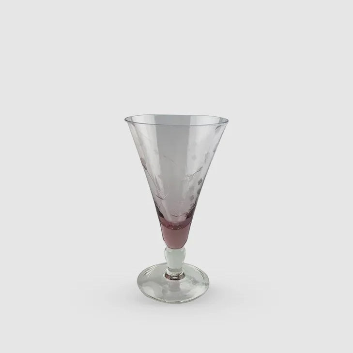 Floral Etched Short Wine Glass | Set 2 Pink
