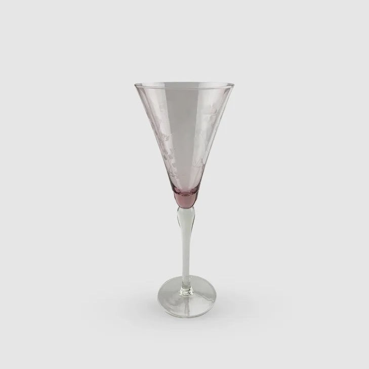 Floral Etched Tall Wine Glass |Set of 2 Pink
