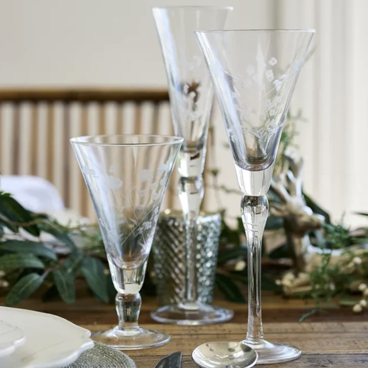Floral Etched Tall Wine Glass | Set of 2 Clear