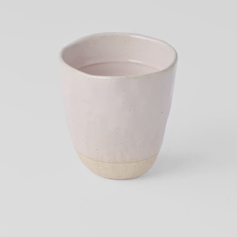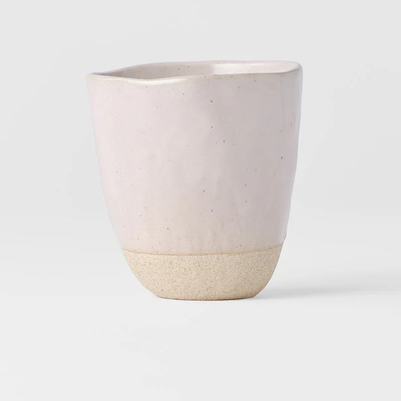 Featuring a sakura pink glaze in a lopsided shape. Made of 'Minoyaki' porcelain, fired at a high temperature and hand finished at a long-standing family run kiln in Japan.