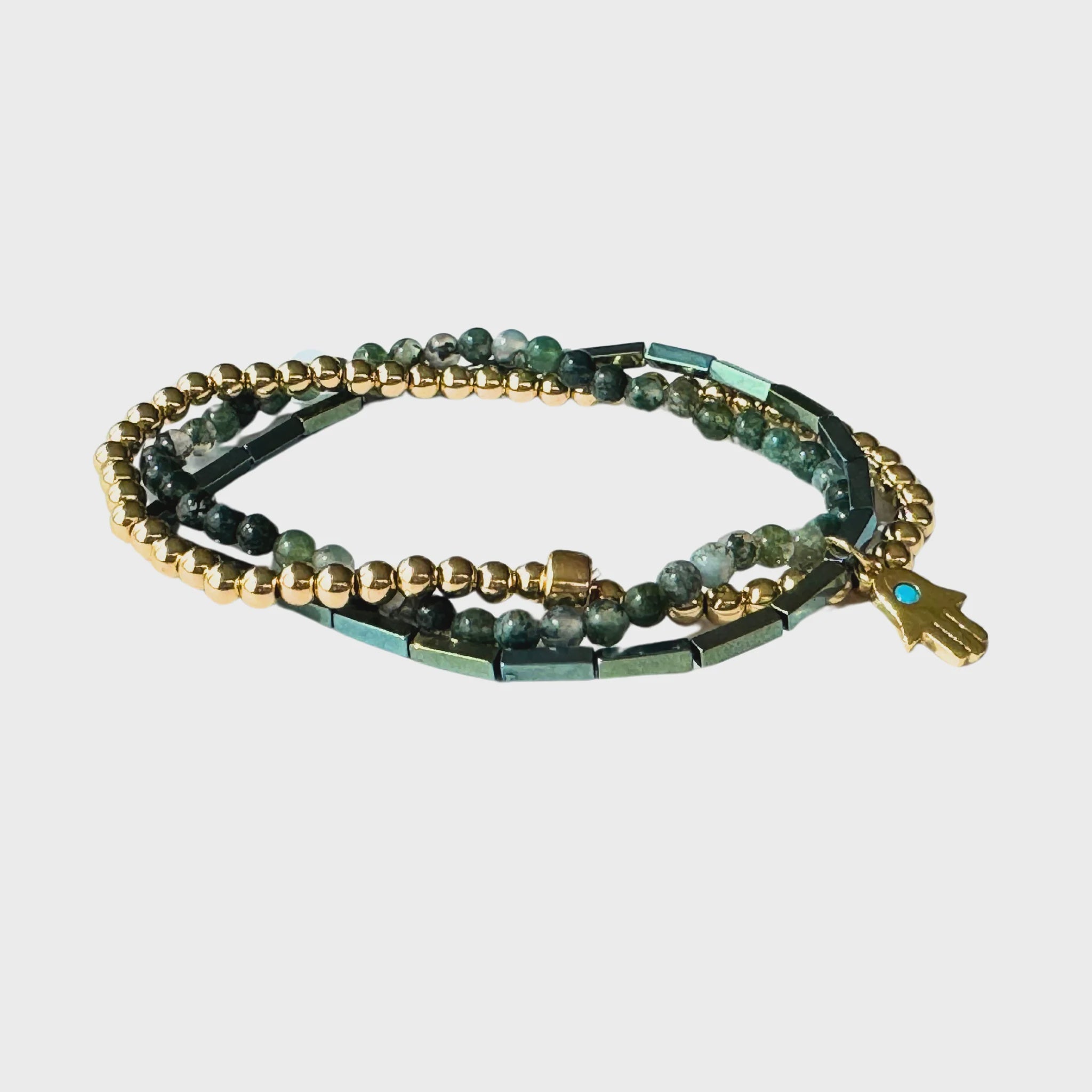 Lindi Kingi Design-Beaded Bracelet | Moss Agate/Gold