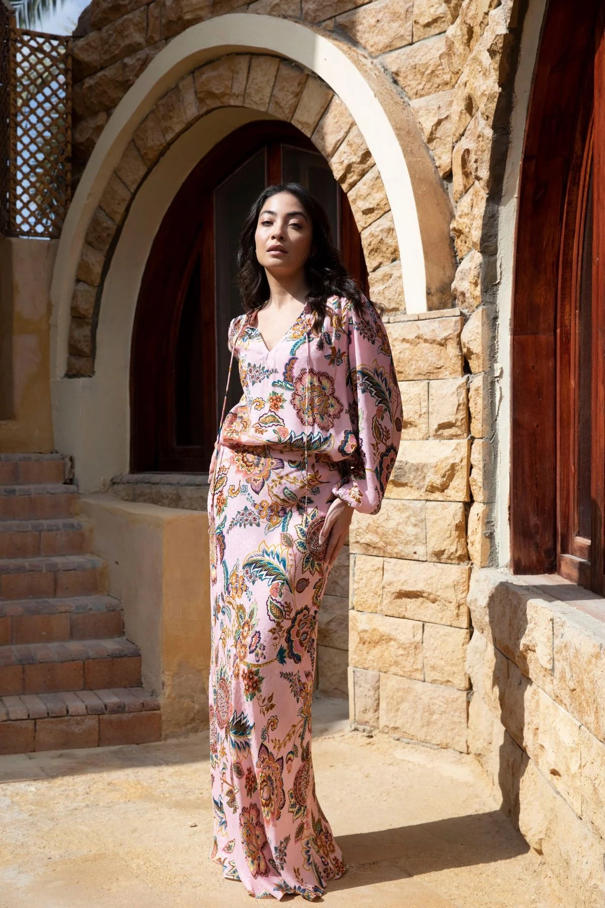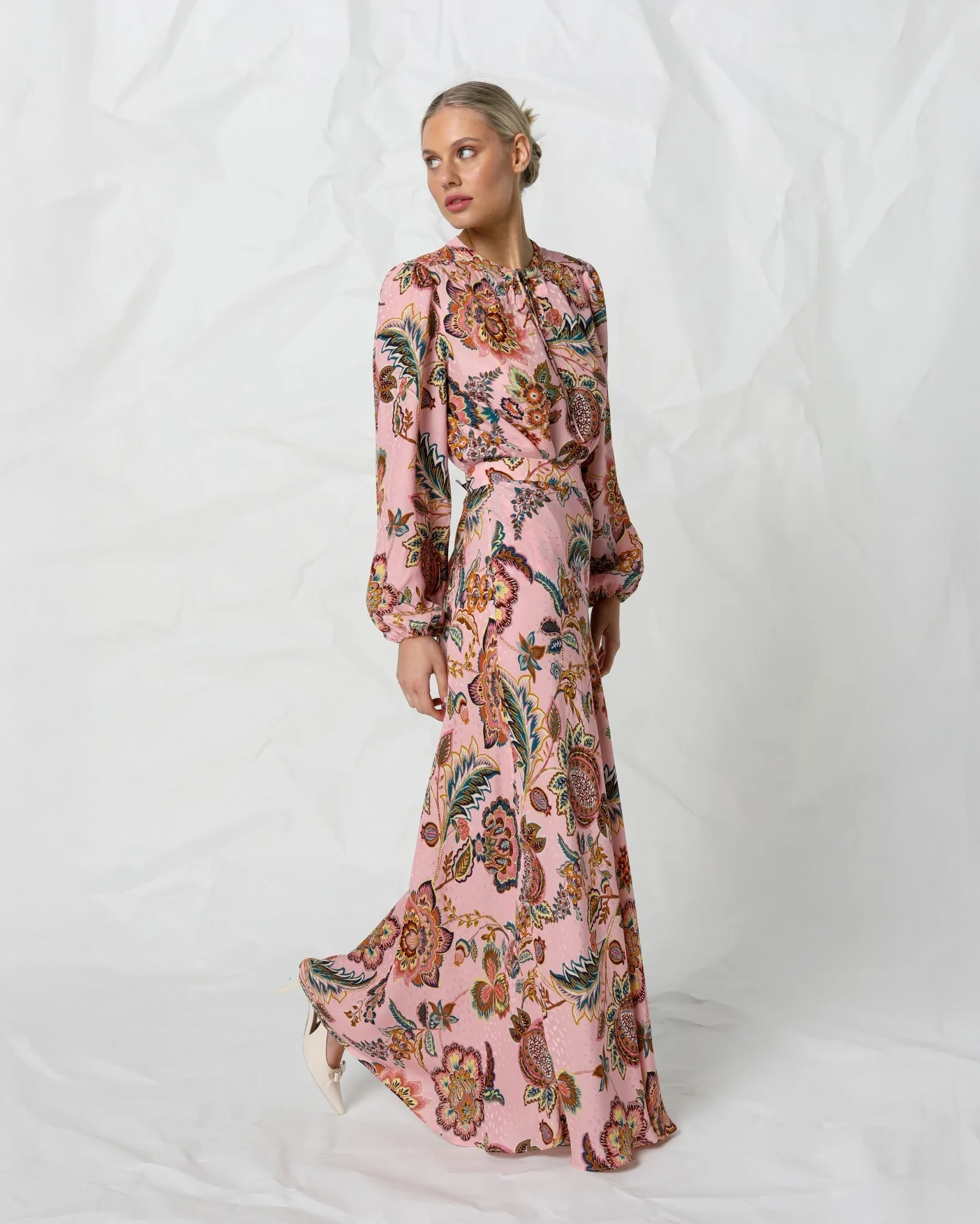 The Elizabeth Maxi Skirt by KACHEL creates a flowing, elegant silhouette, perfectly paired with the Sophie Shirt. Featuring the same paisley floral print, it offers a coordinated look. The soft, draping fabric moves gracefully, while the flattering A-line fit adds sophistication and ease.