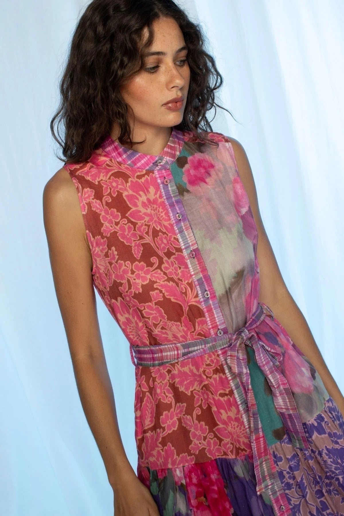The Kennedy Maxi Dress is your ultimate summer staple. This sleeveless beauty features a button-down front, a thin adjustable belt to cinch the waist, and a playful mix of floral prints that make it both fun and effortlessly chic for the season.