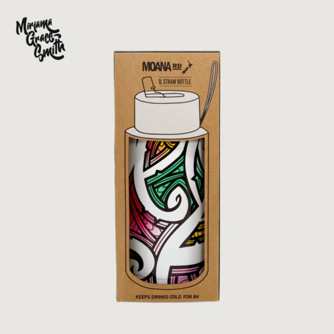 By New Zealand artist Miriama Grace-Smith. Get ready to beat the heat with this 1L eco-friendly drink bottle that comes with a straw lid.