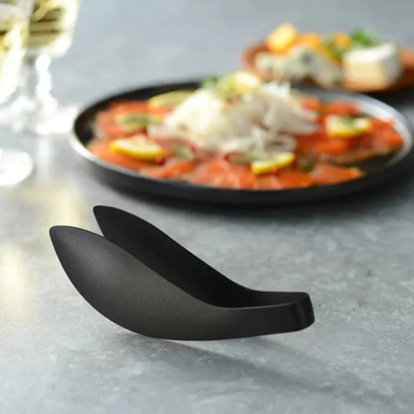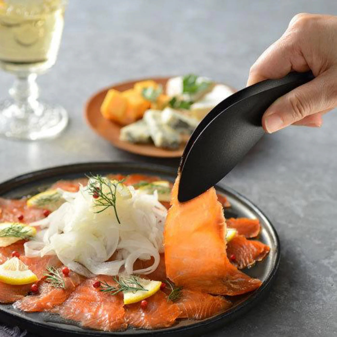 Works like extensions of your fingers. Fits in the palm and is perfect for serving and garnishing. Its uniquely processed soft spring makes it easy to handle delicate food.