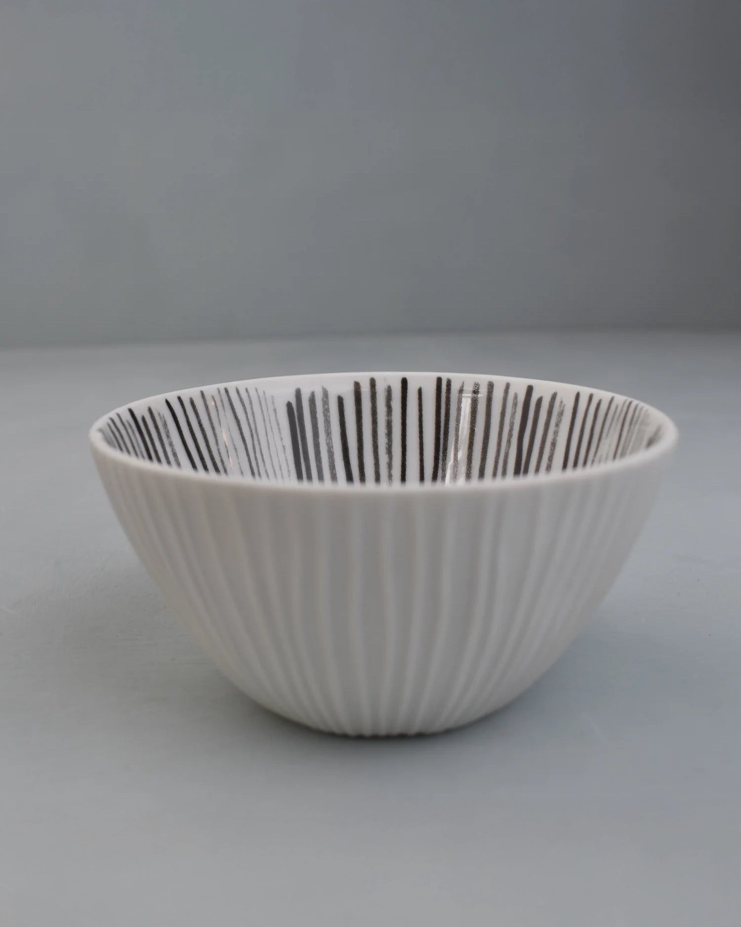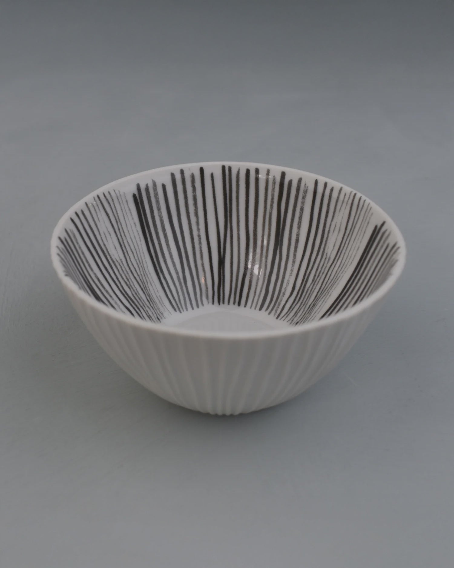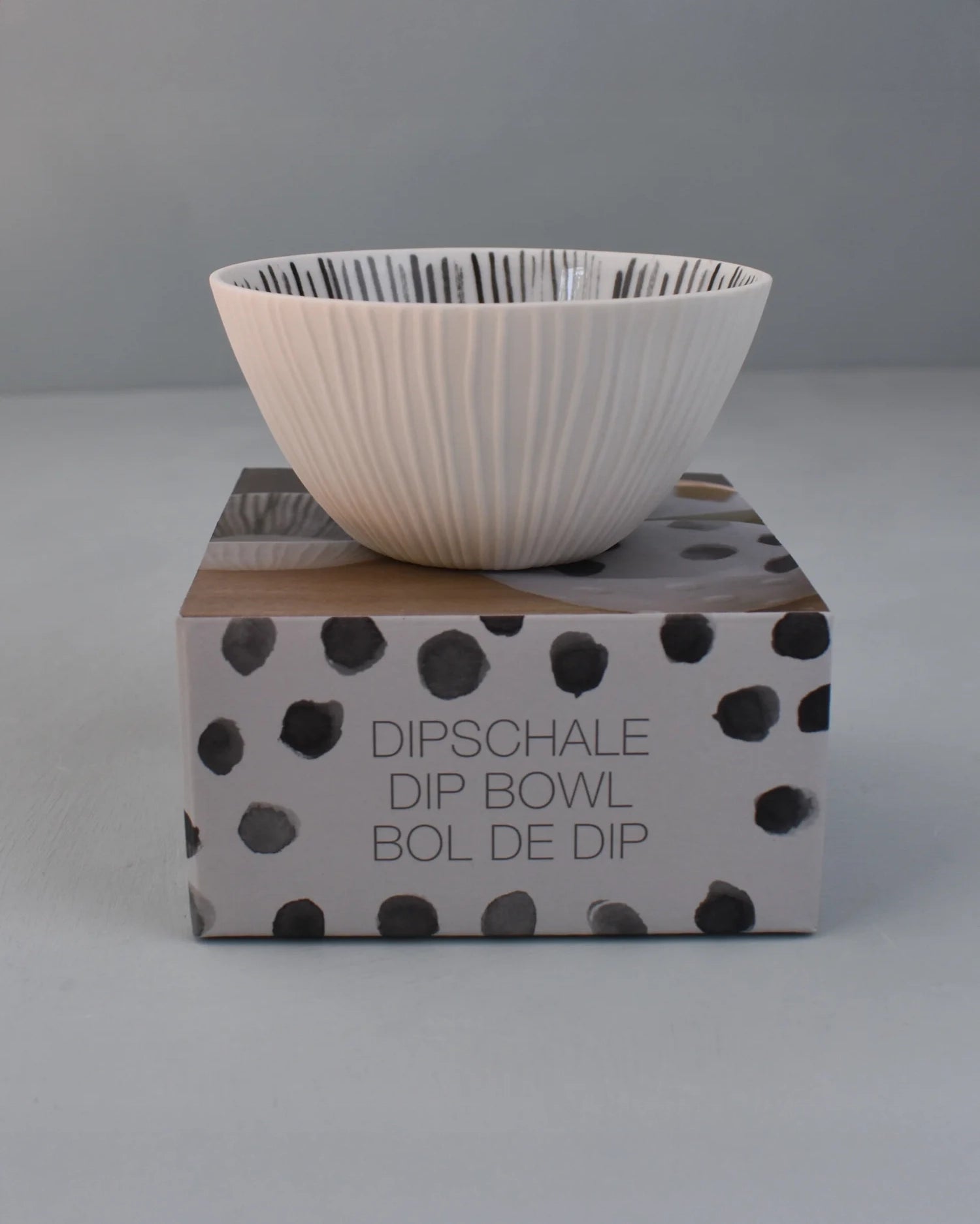 Stripes' porcelain dip bowl by Rader. Glazed on the inside.