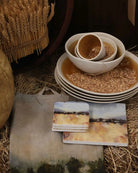 This set of 4 coasters protects your table from rings, and adds a lovely bit of moodiness to your home. Made from heavy resin with a cork backing with a design painted by a local New Zealand artist.