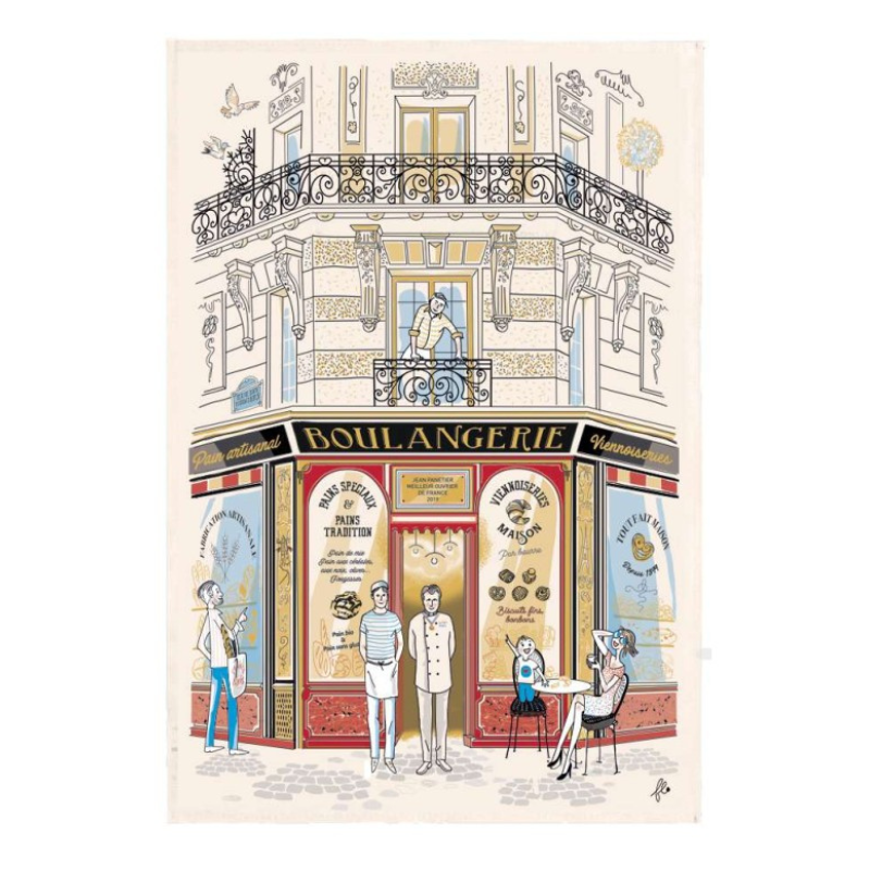 Gorgeous French bakery tea towel. Made from 100% cotton, this tea towel is a perfect way to add a touch of French country charm to your kitchen.