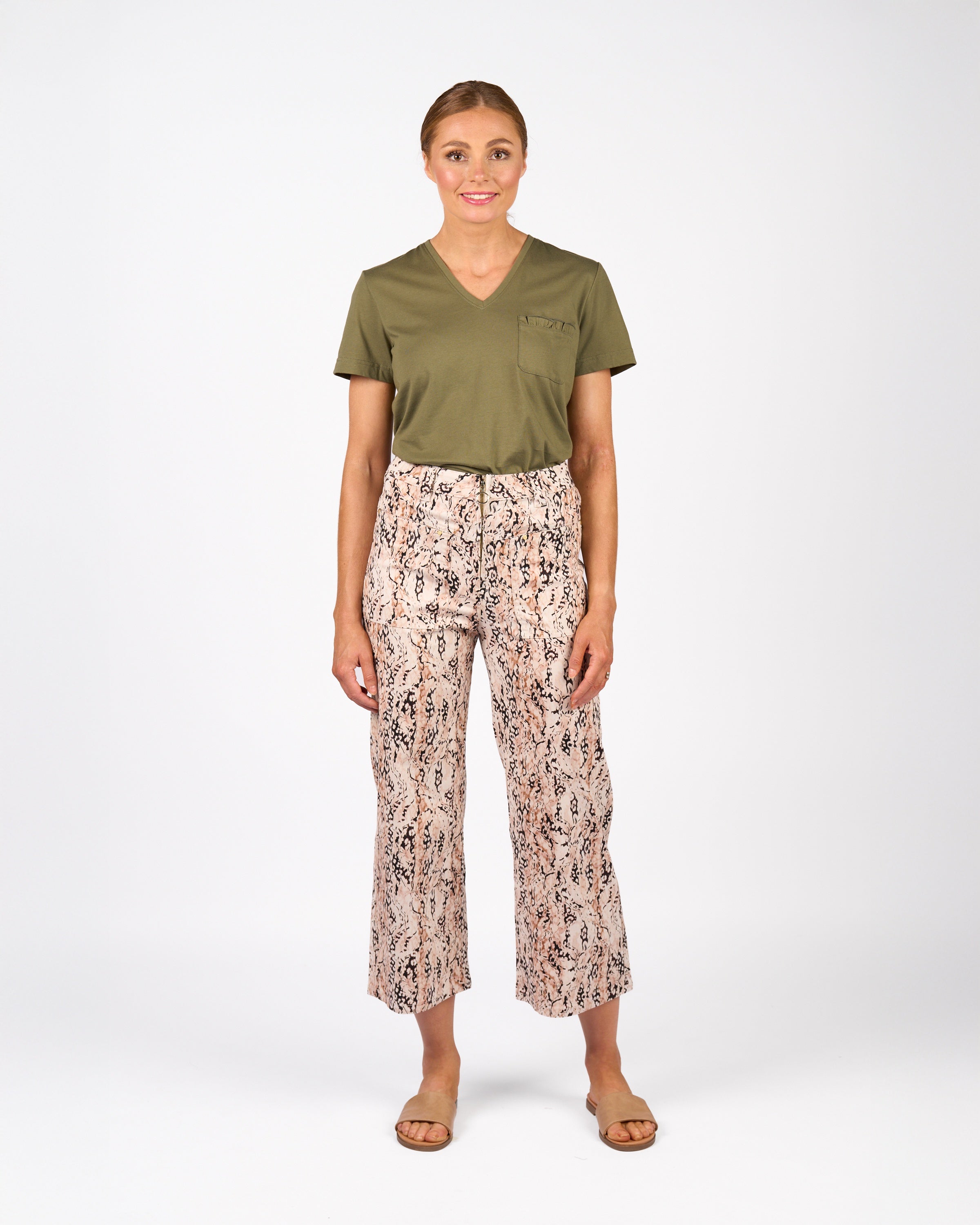 The Spin Jean in Bengal print adds a bold twist to a classic wide-leg silhouette. Made from stretch denim for comfort and shape, it features gold zip and rivet detailing that brings a hint of polish to its playful print. A statement style that's still easy to wear.