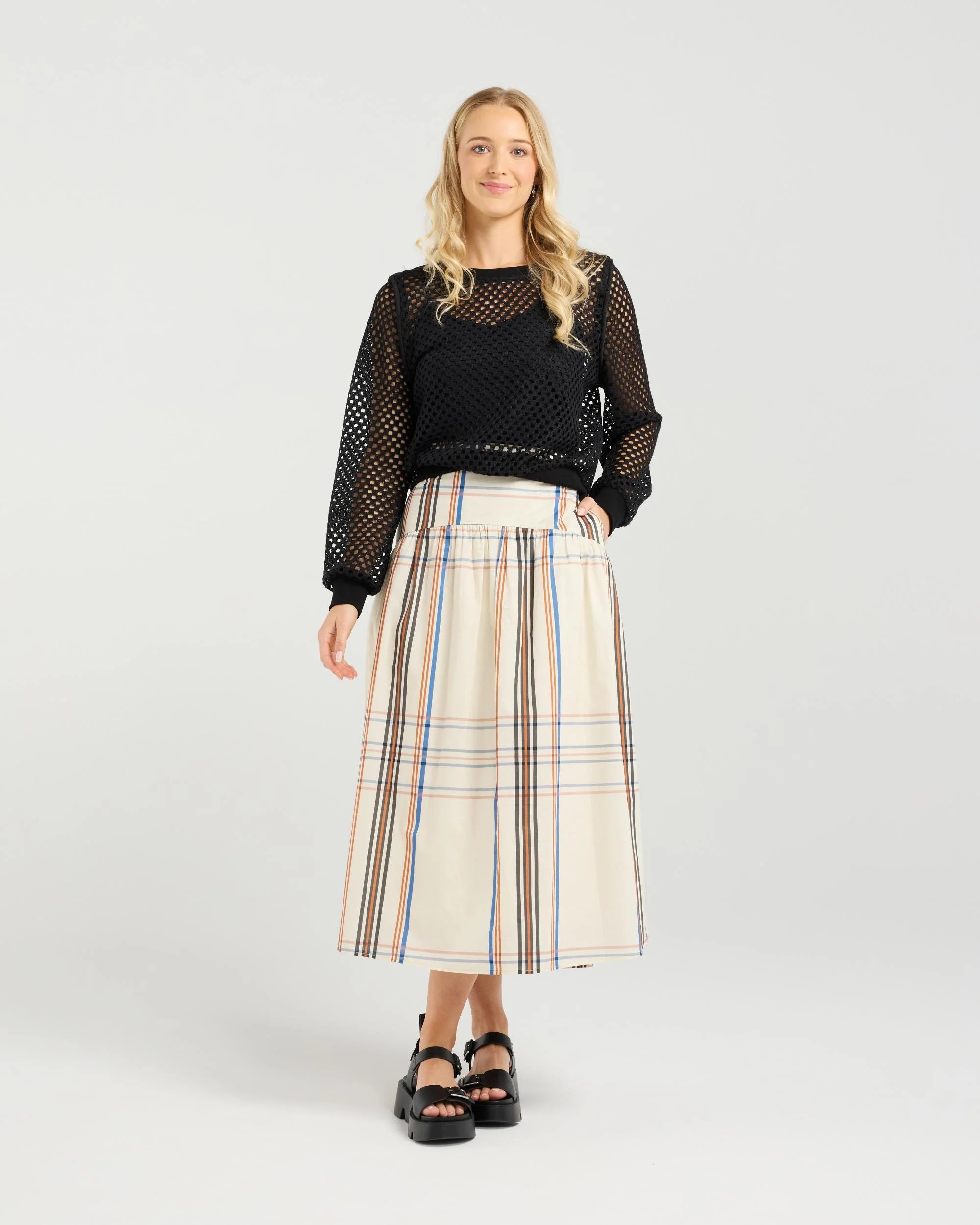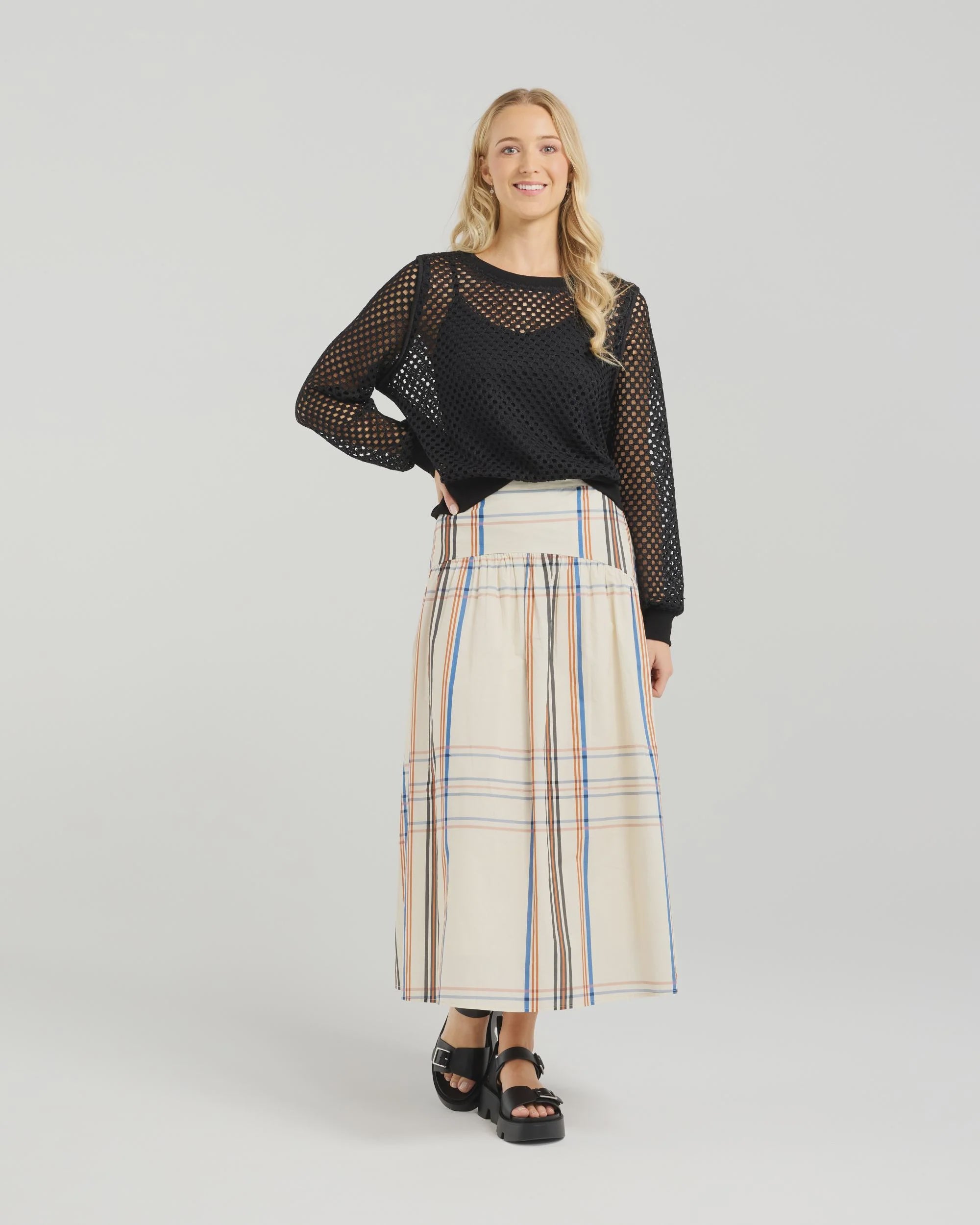 A striking play on texture and transparency, this jumper is crafted in an exaggerated fishnet-style knit that delivers bold, off-duty energy. The oversized open weave creates a statement silhouette—light, and unapologetically edgy. Finished with clean ribbed trims at the neck, cuffs, and hem, it balances raw texture with refined detail. Perfect for layering or letting skin peek through, this piece pushes the boundaries of knitwear with confident ease.