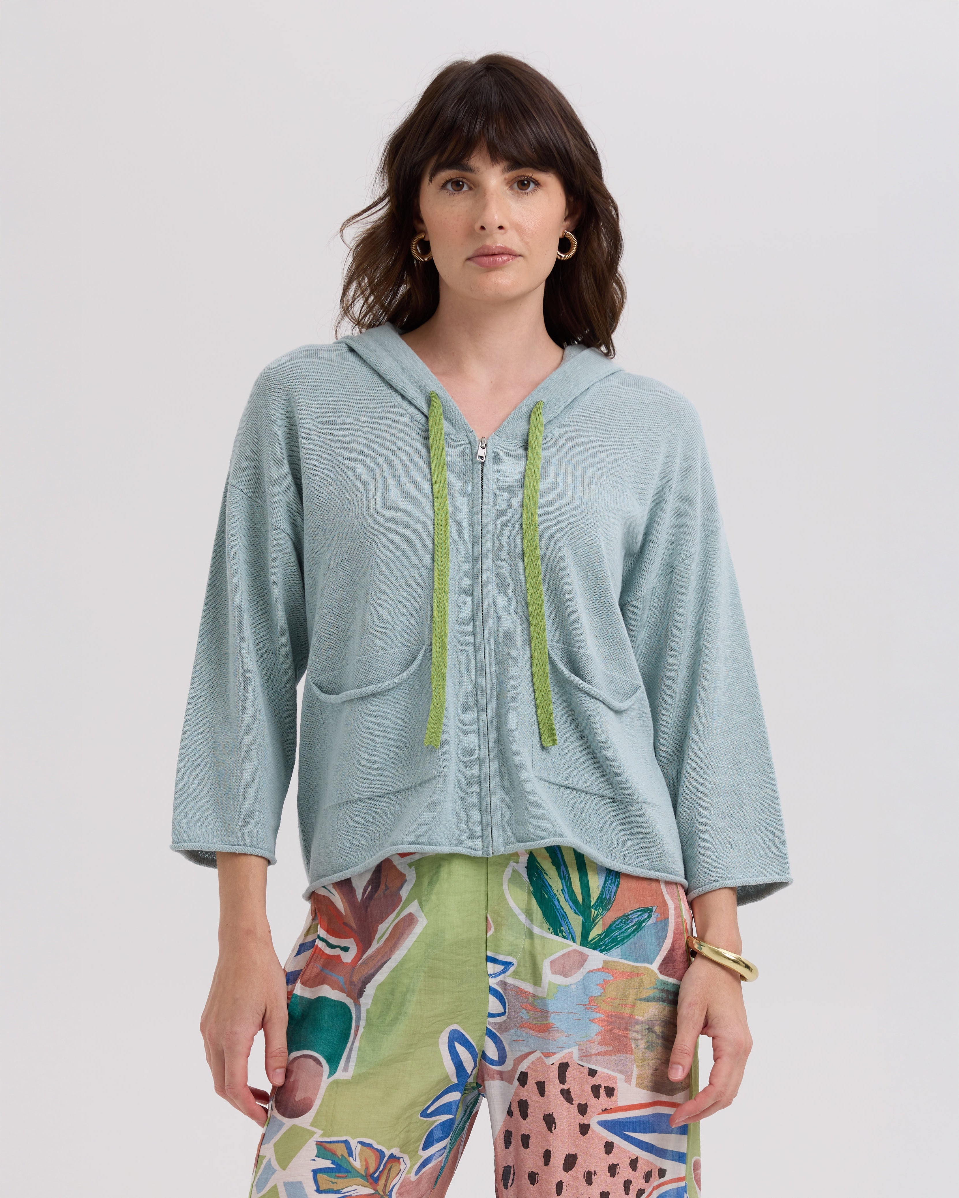 The Linen Hoodie by LD + Co is an effortlessly lightweight layer, perfect for easy spring dressing. Designed with a relaxed drop shoulder fit, it features raw-edged front pockets and rolled edges at the sleeve cuffs, pocket trim, and hemline for a lived-in, casual feel. A contrast drawstring adds a subtle pop of detail. Crafted from a breathable blend of linen and cotton, it’s your go-to for laid-back comfort with a touch of polish.